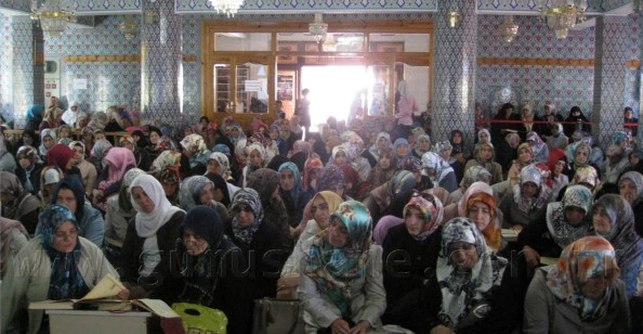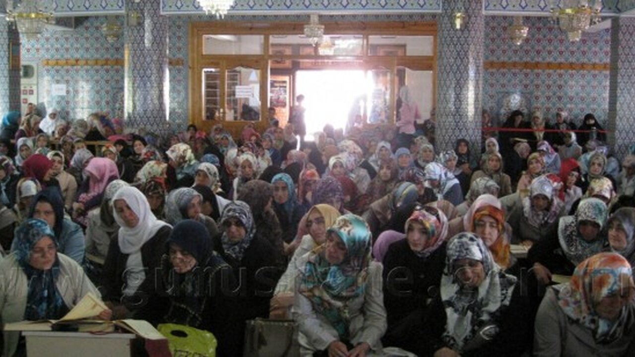 Okunan ilahilerle sona eren hatim merasiminin sonunda kadın cemaate Diyanet İşleri Başkanlığı yayınlarından “Kırk Hadiste Helal Kazanç” ve “Kırk Ayette Aile” kartelaları dağıtıldı.