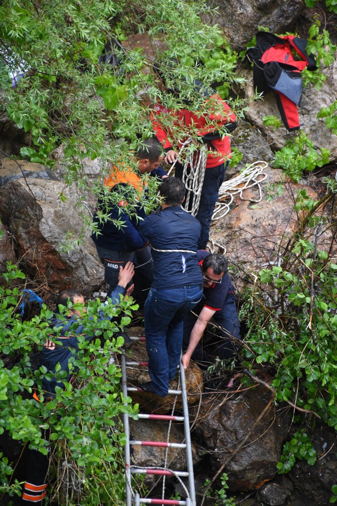 Vatandaşların ihbarı üzerine olay yerine gelen Gümüşhane Belediyesi İtfaiye ekipleri ve İl Afet ve Acil Durum Müdürlüğü (AFAD) ekipleri yaklaşık yarım saat süren çalışmanın ardından sürücü Keleş ve yanında bulunan abisi Gökhan Keleş’i (29) araçtan çıkardı.