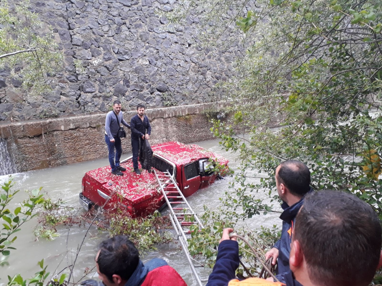 Gümüşhane’de kamyonet Harşit Çayına uçtu: 2 yaralı 4