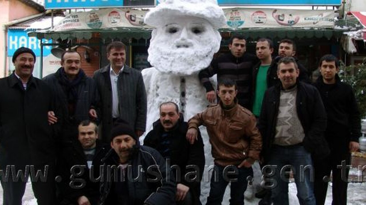 Öte yandan kent merkezindeki Hükümet Caddesi esnafı ise güçlerini birleştirerek caddedeki tüm karları toplayıp yaklaşık 2,5 metre boyunda kardan adam yaptı. Aralarında, camcı, elektronikçi, manav, çiçekçilerin bulunduğu mahalle esnafı, işe bu kez sanatı da katarak kimilerinin Nasreddin hocaya, kimilerinin Kanuni Sultan Süleymana benzettiği kardan adamı yaptı.