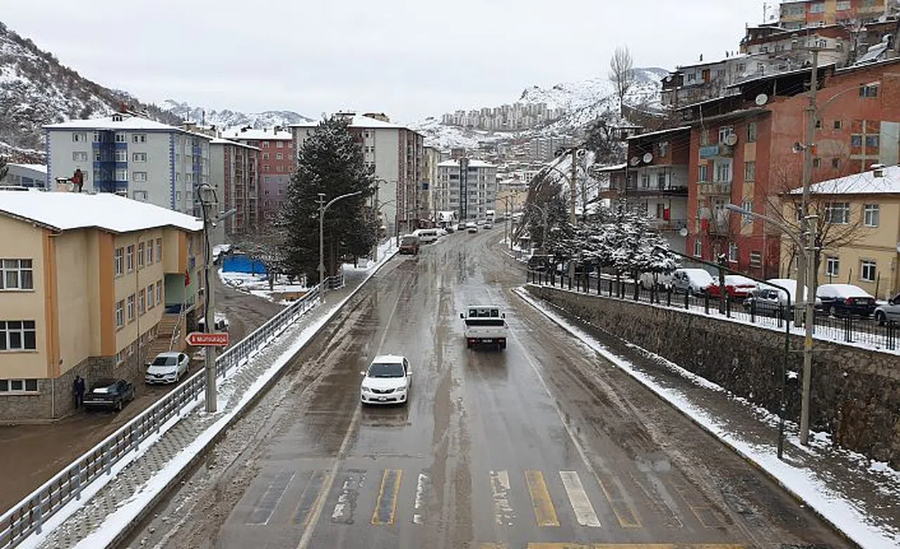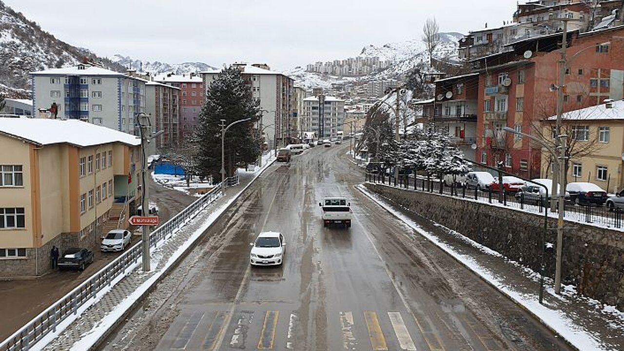 Gümüşhane’de gece gerçekleşen kar yağışının ardından kent merkezi beyaza büründü.