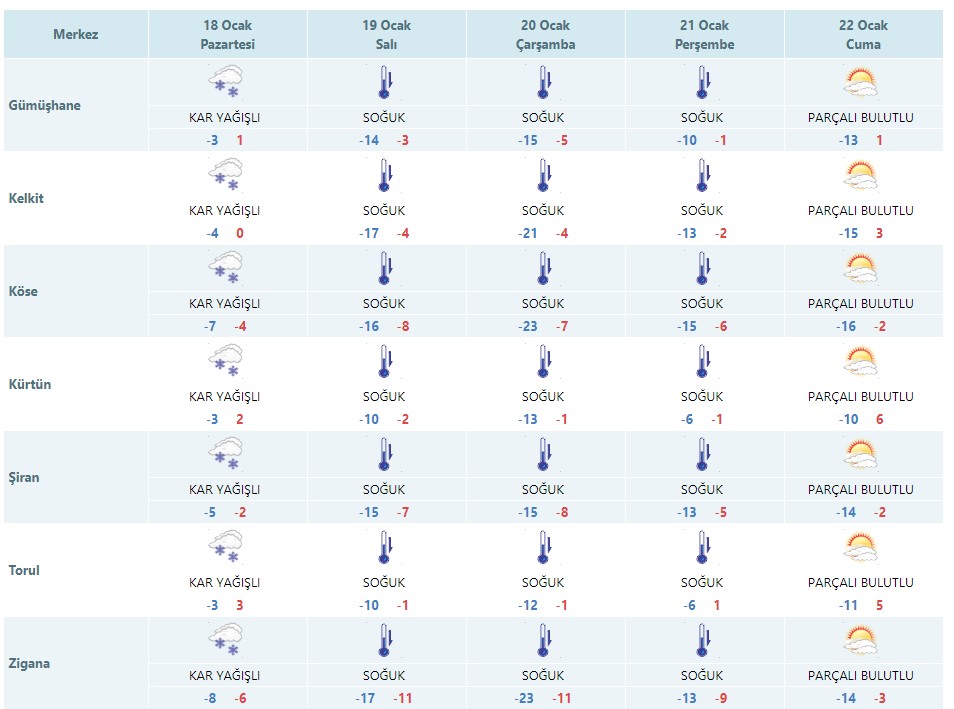 Son meteorolojik değerlendirmelere göre yağışın ardından geçtiğimiz hafta 60 yıllık Ocak ayı sıcaklık rekorunun kırıldığı Gümüşhane'de hava sıcaklığı salı gününden itibaren sıfırın altında 15 derecelere kadar düşecek.