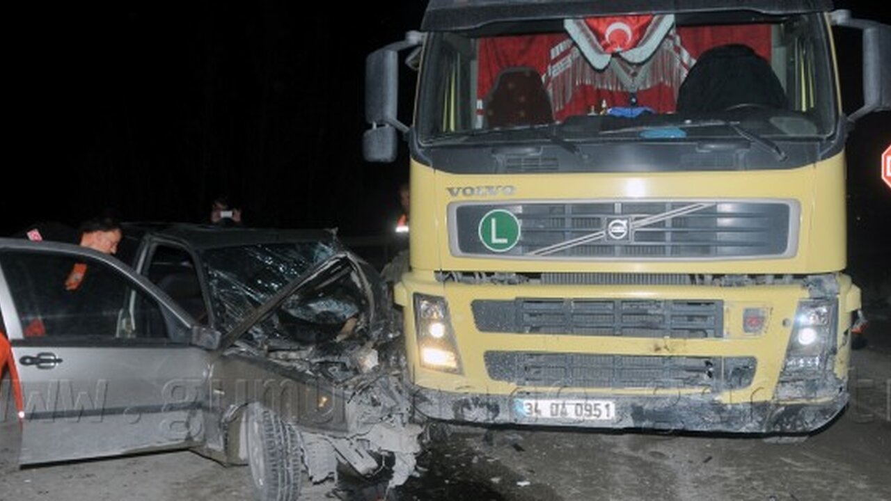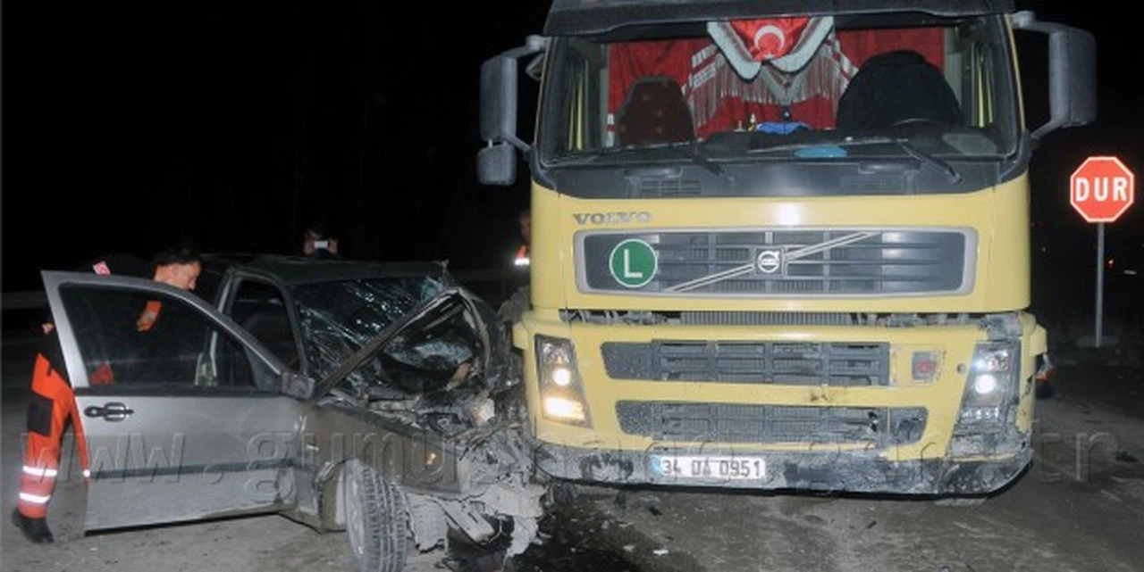 Edinilen bilgiye göre kaza bugün saat 19.00 sıralarında Gümüşhane-Trabzon karayolunun Mescitli köyü çıkışı eski Güdesan Un Fabrikası önünde meydana geldi. Gümüşhane istikametine giden Hasan Cerrah (36) yönetimindeki 61 NE 764 plakalı otomobil, karşı yönden gelen bölünmüş yol ve çevre yolu inşaatında çalışan hafriyat yüklü Tuncer Güner (34) yönetimindeki 34 DA 0951 plakalı kamyonla çarpıştı.