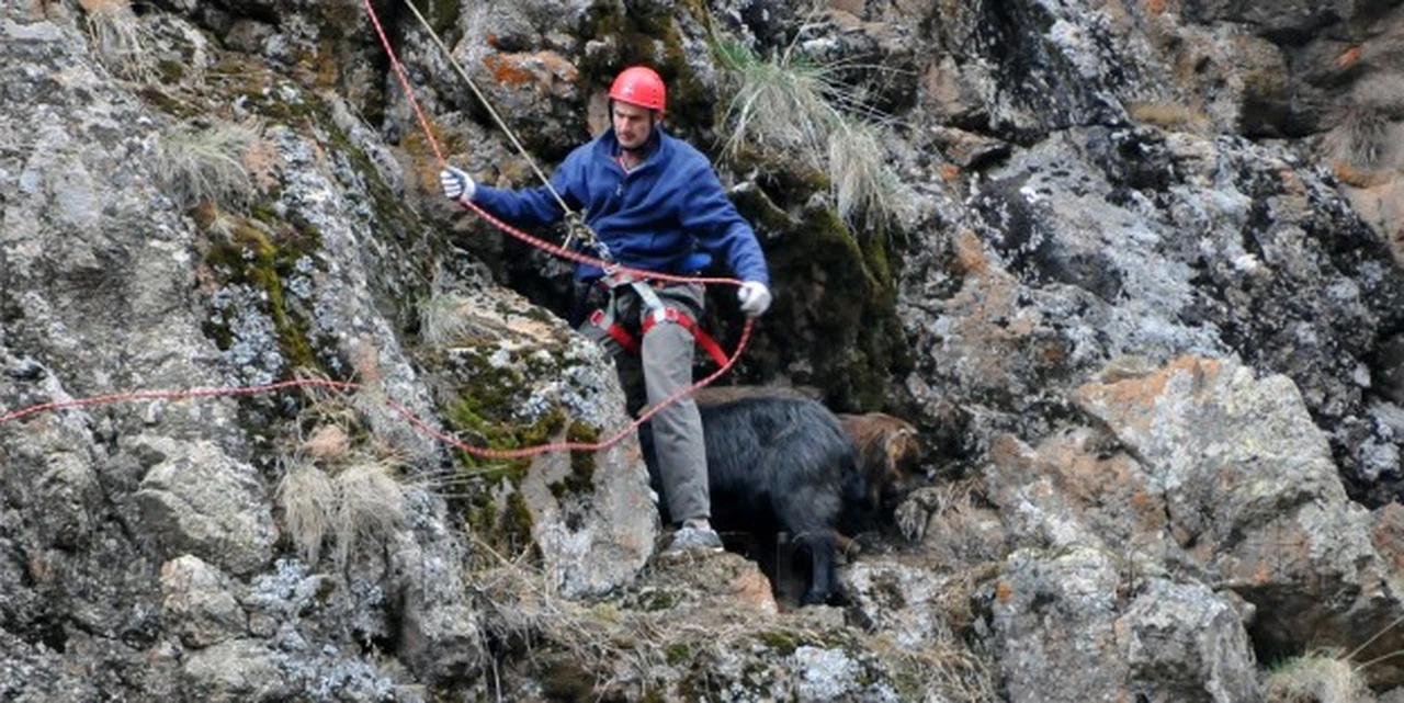 Mahallede küçükbaş hayvan bakıcılığı yapan Yasin Arslan, üç gün önce kaybolan iki keçisini her tarafı aramasına rağmen bulamadı. Mahallenin girişinde bulunan kayaları son kez kontrol ettiğinde ise birisi gebe, diğeri de yeni doğum yapmış keçilerini 100 metre yüksekliğindeki kayanın orta kısmında bir oyuk içerisinde gördü.