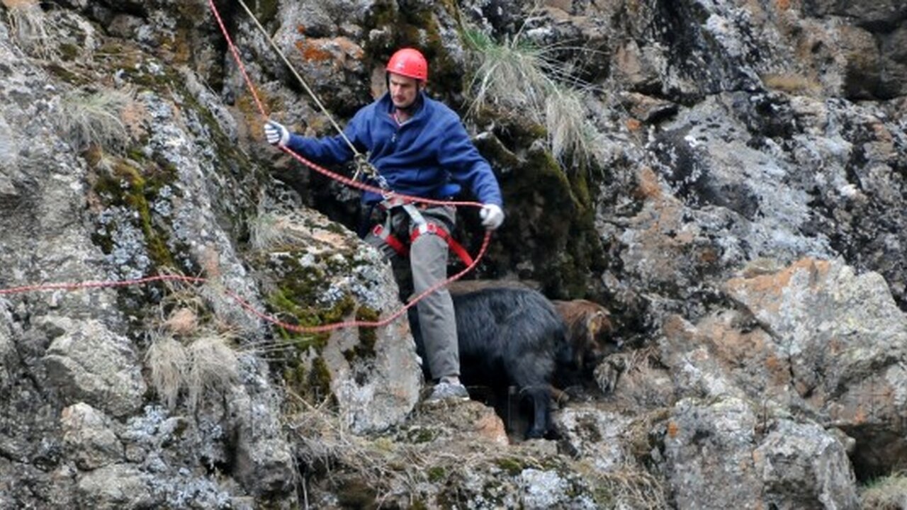 Toplamda üç kişilik AFAD ekibi ve iki kişilik dağcılık ekibiyle mahalleye hareket eden heyet, bir süre keşif yaptıktan sonra oldukça dik olan bölgeye inmek için yanlarında getirdikleri halatlarla keçilere kadar inip, onları başka bir ipe bağlayıp çekmeye karar verdi.