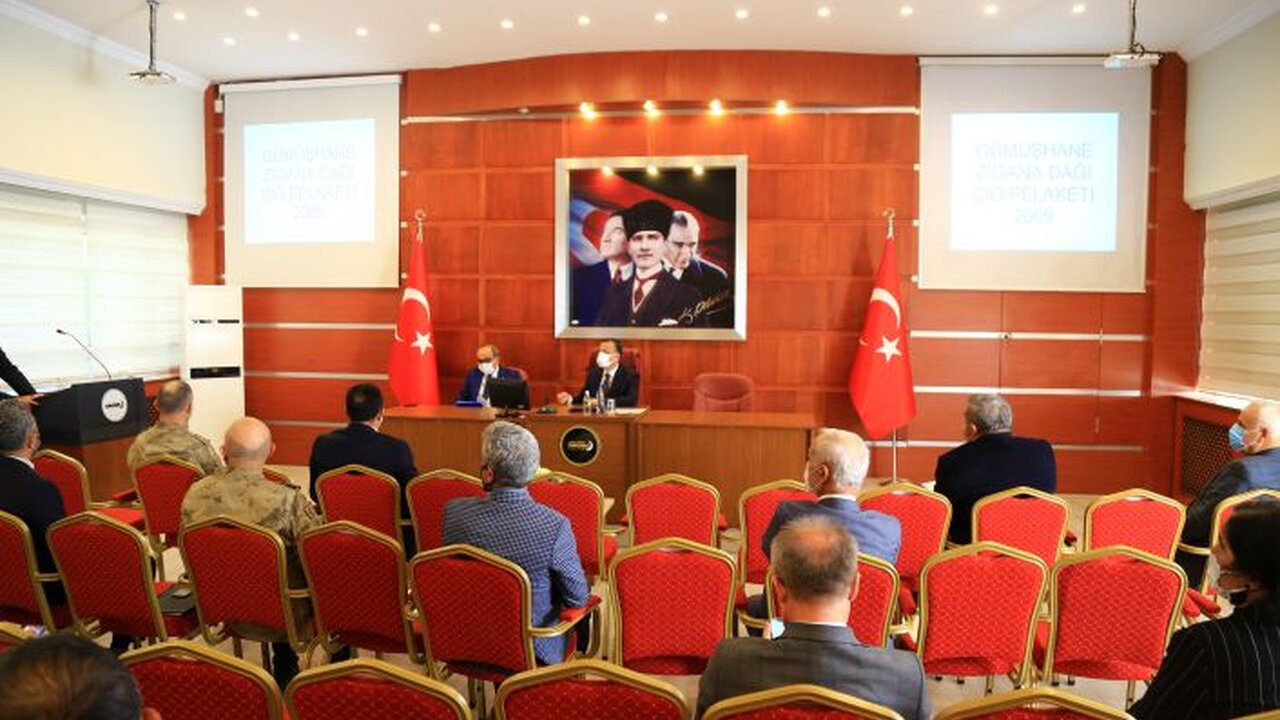 Valilik Toplantı Salonunda düzenlenen ve Vali Yardımcısı Gürkan Karaman, İl Emniyet Müdürü Celal Taşci, İl Jandarma Komutanı Albay İsmail Gökcek, İl Özel İdaresi Genel Sekreteri Ekrem Akdoğan, İl Milli Eğitim Müdürü Miraç Sünnetçi, İl Sağlık Müdürü Dr. Necip Yemenici ve ilgili diğer kurum müdürlerinin katıldığı toplantıda ilk olarak 2009 yılında Torul ilçesi sınırlarındaki Zigana dağında gerçekleşen çığ felaketinde hayatını kaybeden 10 dağcı için hazırlanan video izletildi.