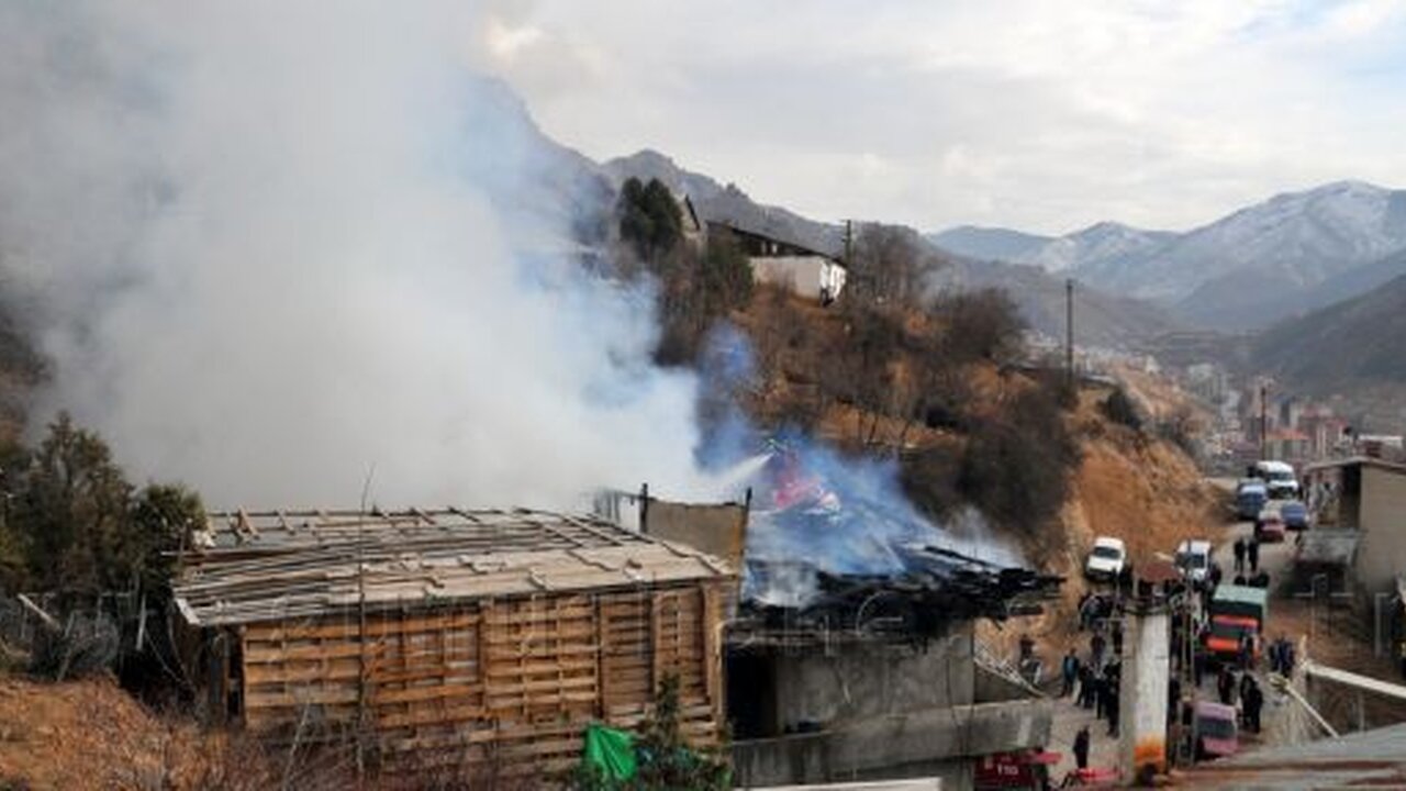 Gümüşhane kent merkezinde meydana gelen yangında, alev alan çatıda bulunan tüpler patlayınca mahalle sakinleri korku dolu anlar yaşadı.