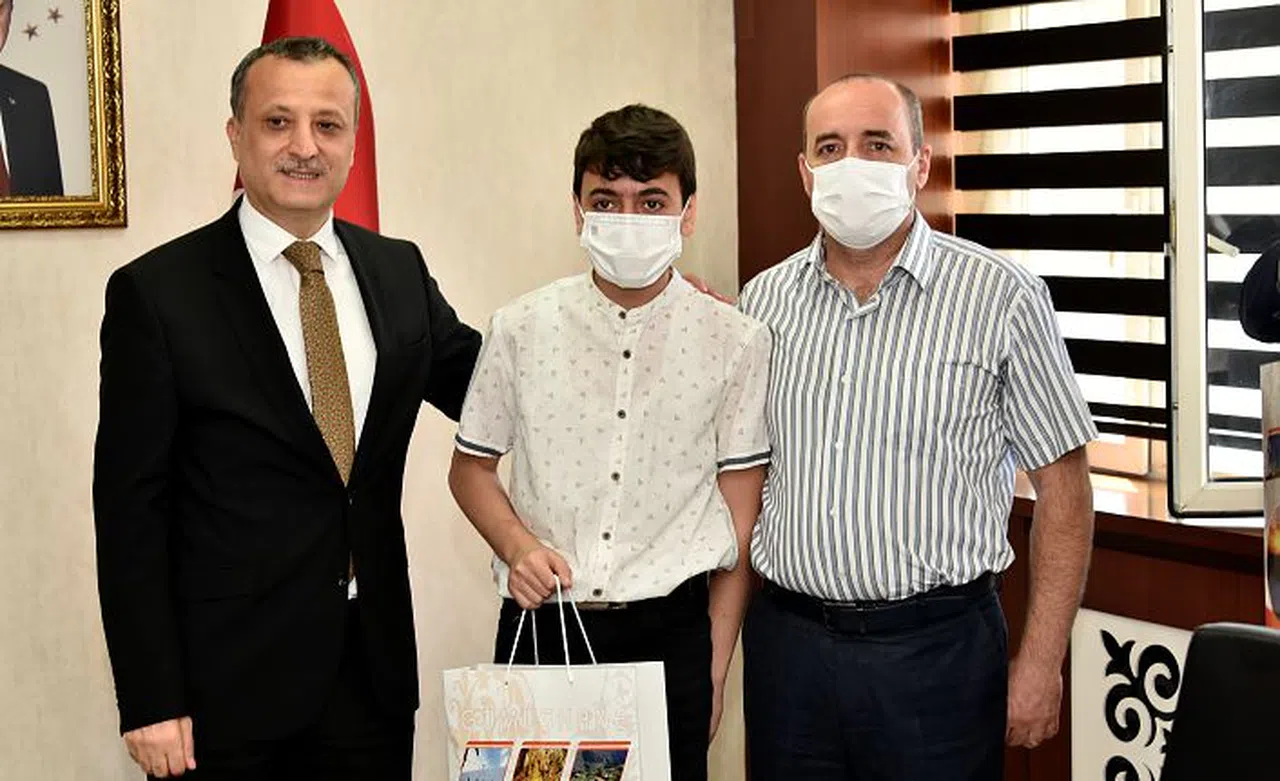 Gümüşhane Valisi Kamuran Taşbilek, Liselere Geçiş Sınavında (LGS) Türkiye derecesi yapan öğrencilere düzenlenen törenle hediyelerini takdim etti.