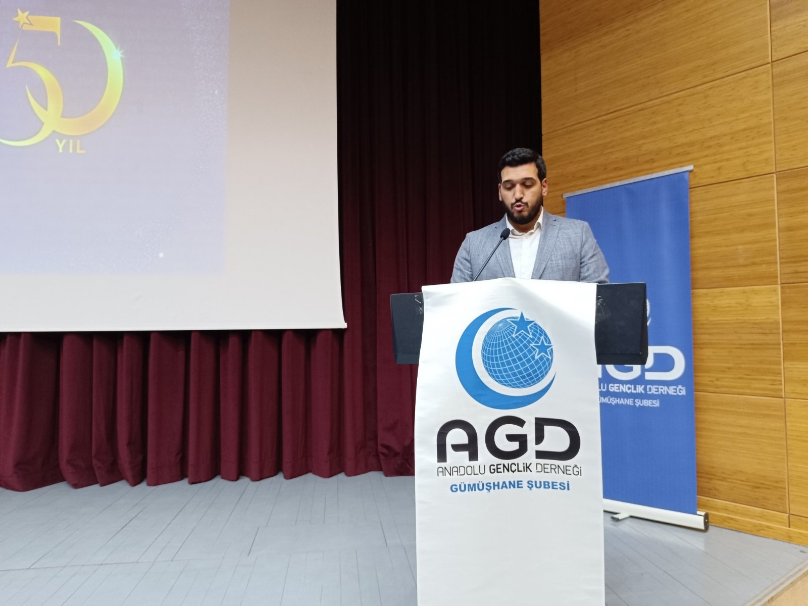 AGD Gümüşhane Şube Başkan Furkan Ustakurt, açılış konuşmasında Anadolu Gençlik Derneği bünyesinde geleneksel olarak icra ettikleri Mekke’nin Fethi Programı’nın bu yıl da tüm Türkiye’de, 81 şubede 600’den fazla noktada, Avrupa, KKTC ve Azerbaycan’da icra edildiğini belirtti.