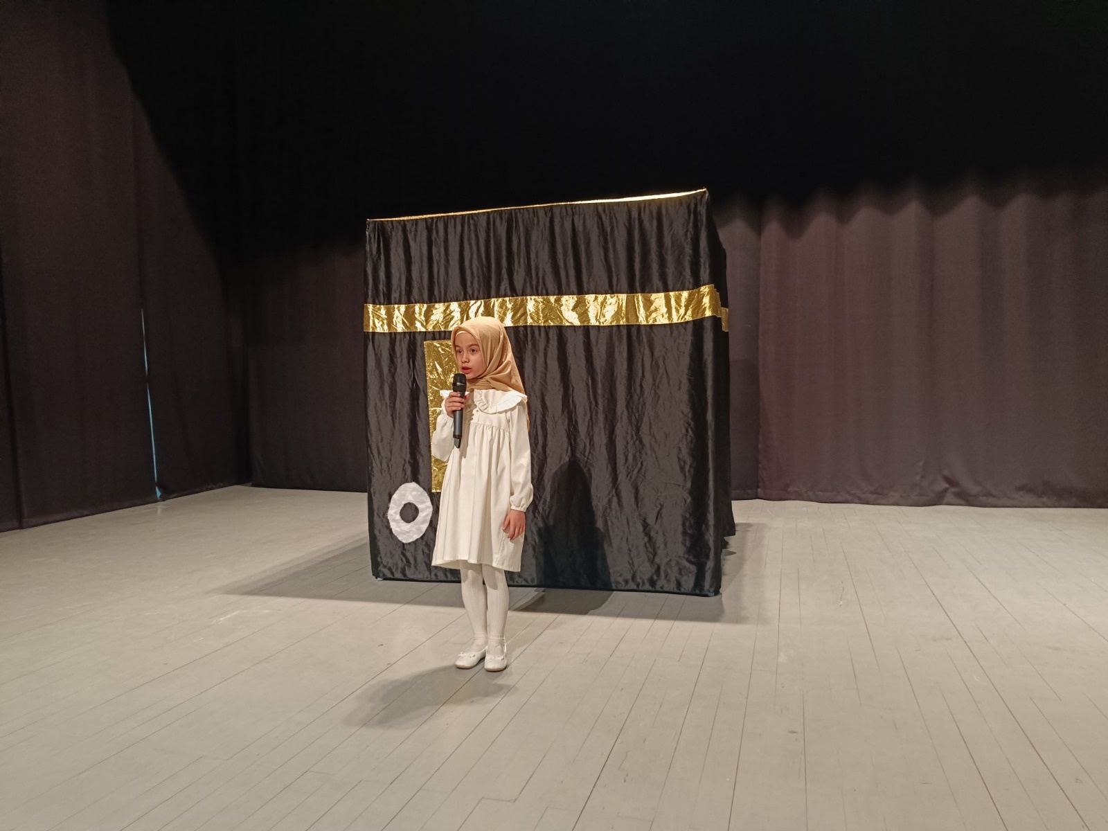 Sinevizyon gösteriminin ardından AGD Kâşif grubunun minik öğrencileri “Temsili Veda Haccı ve Hutbesi” gösterisi yaptı.