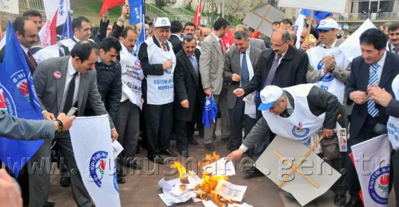 Ağaç’ın konuşmasının ardından memurlar ellerinde ki maaş bordrolarını yaktı ve İl Müftülüğünün düzenlediği kermesten yöresel lemis ve ayran yemek üzere olaysız bir şekilde dağıldı.