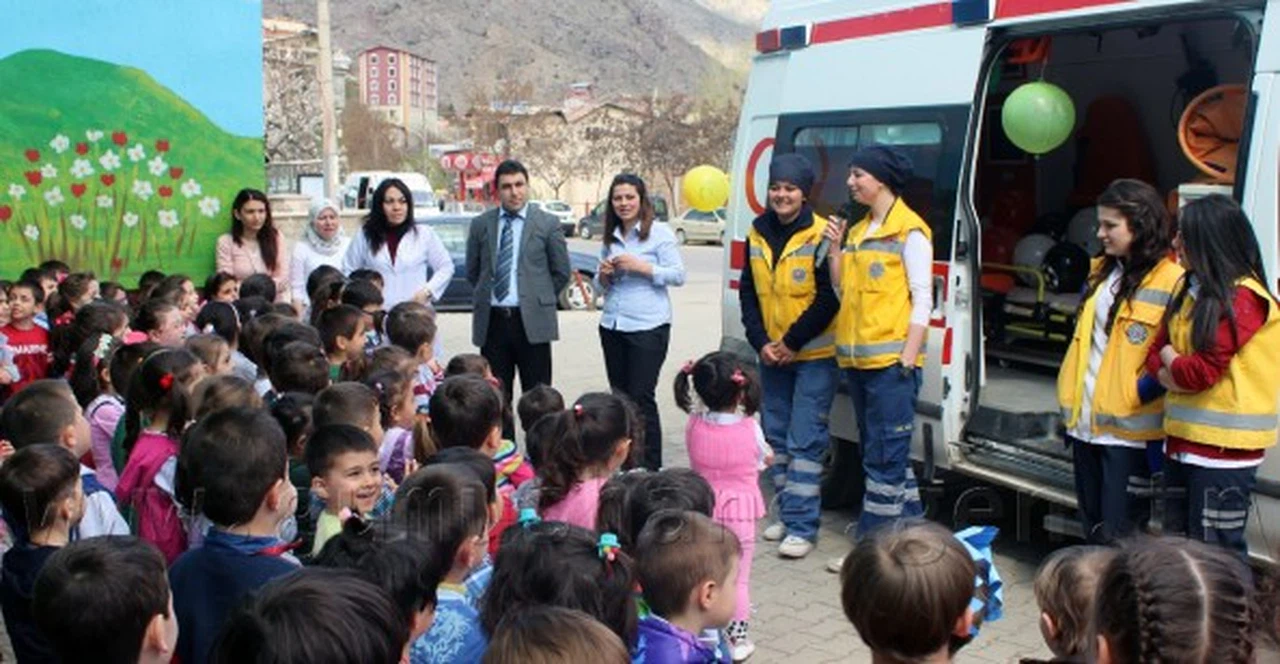 112 Acil Servisi personeli tarafından yapılan ambulans tanıtımı ile minikler ambulansı, ambulans içindeki araç ve gereçleri, ambulans ve ilkyardımın önemini kavrayarak hasta taşıma tatbikatı, hasta taşırken nelere dikkat edilmesi gerektiği konularında bilgilendirildi.