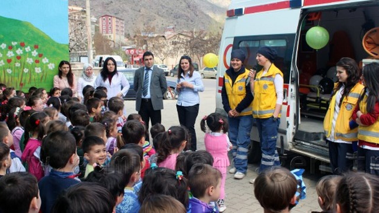 Ambulans tanıtımını yapan 112 Acil Servisi personelleri Yunus Yılmaz, Metin Özlü ve Paramedikler Gülizar Yıldırım ile Seda Sağlam, miniklerin doktorlardan ve ambulanstan korkmamaları gerektiğini, bunların hayatın birer parçası olduğunu ifade ederek tanıtım programı sonunda bütün çocuklara balon dağıttı.