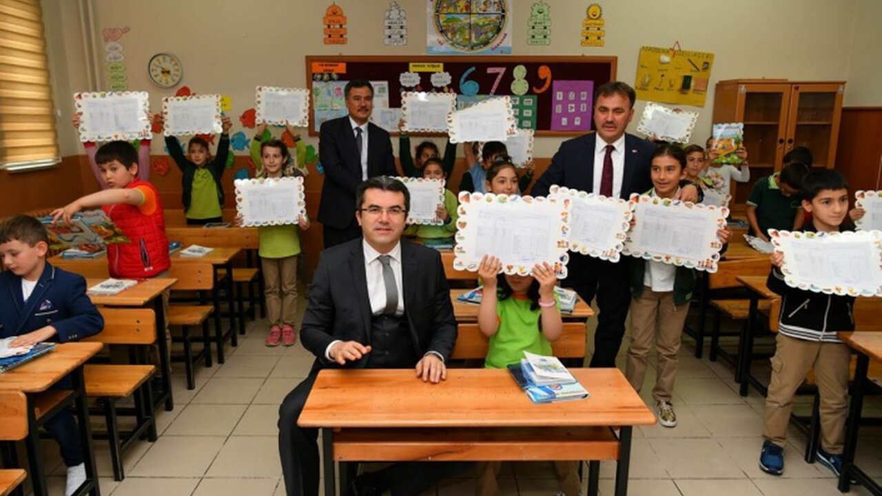 Okuldaki anasınıfı, 1 ve 3. sınıf öğrencilerinin karnelerini Belediye Başkanı Ercan Çimen, İl Jandarma Alay Komutanı Albay Cezayir Danışan, İl Milli Eğitim Müdürü Seydi Doğan ve kurum müdürleriyle dağıtan Vali Memiş, öğrencilerle yaz tatili konusunda da sohbet etti.