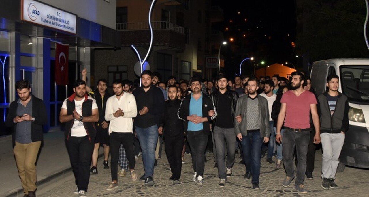 Gümüşhane’de bugün akşam saatlerinde yurduna dönerken dağ yamacından üzerine gelen kaya parçalarının üzerine düşmesi sonucu feci şekilde can veren üniversite öğrencisi Abdullah Atakan Öztürkmenoğlu için protesto yürüyüşü düzenlendi.