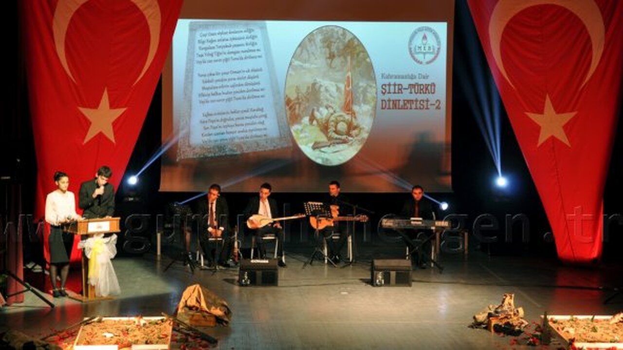 Gümüşhane Milli Eğitim Müdürlüğü tarafından organize edilen ve kent merkezinde bulunan 11 lisenin tamamının öğrencileri tarafından hazırlanan şiir ve türkü dinletisinin ikincisi ‘kahramanlık’ temasıyla gerçekleştirdi.