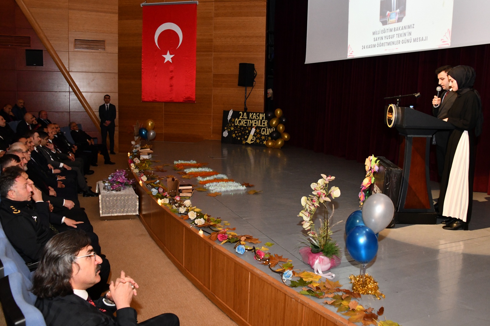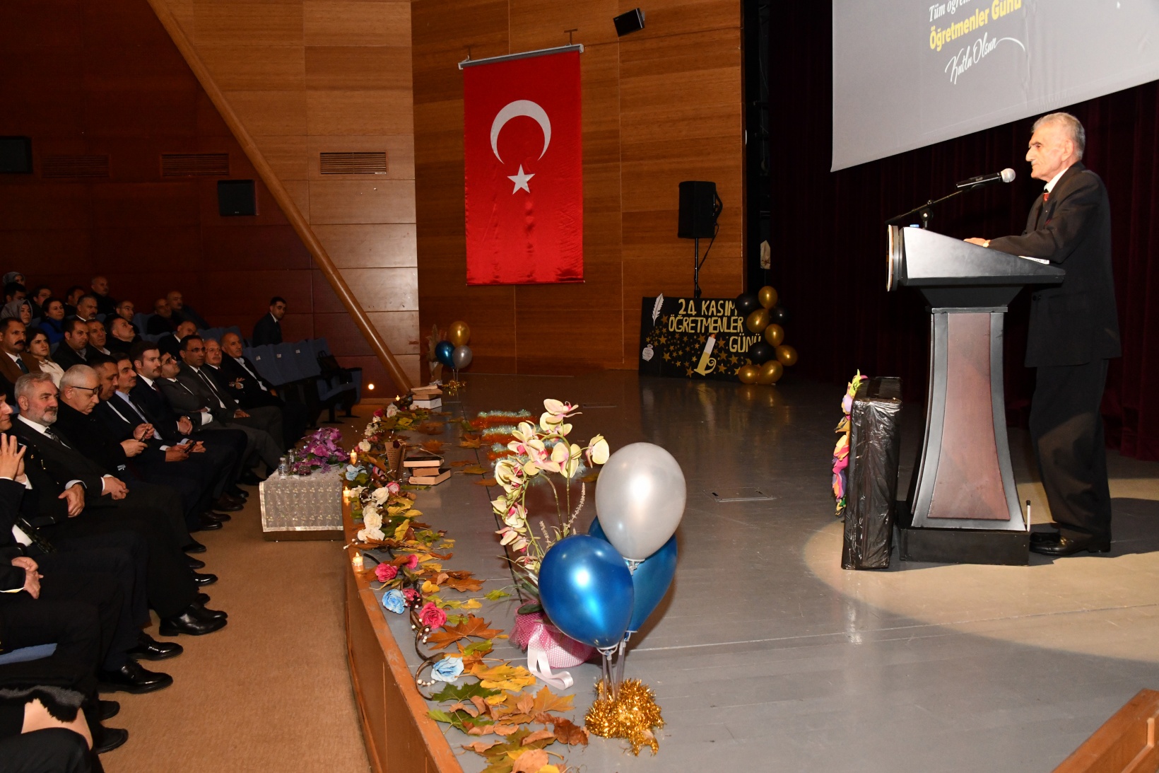 Programda konuşan Vali Aydın Baruş, “Öğretmen ışık demektir, öğretmen geleceğe aydınlık tutan insan demektir. Öğretmenlik bu hayattaki en kutsal mesleklerden birisidir. Çünkü insanı inşa eden, hatta bir usta gibi onu yoğuran, mayasını katan çok değerli bir meslek sahibidir öğretmen. Böyle kutsal bir mesleği icra eden arkadaşlarımızın ulusumuzun geleceğini inşa etmede çok büyük emekleri olduğunu hepimiz biliyoruz. Önemli olan bu idealizmi, bu şuuru korumaktır. Lütfen umutlarınızı ve sevincinizi hiçbir zaman kaybetmeyin. Çünkü büyük bir milletiz. Gelecek bizimdir. Bu geleceği oluşturmada sizlerin emeği inkar edilemezdir. Gelecekte büyük insanlar olarak anılmak herkesin marifeti değildir ancak bu husus öğretmenlere mahsus bir özelliktir. Bunu hiçbir zaman unutmadan çocuklarımızı vereceğiniz bilgilerle ve onların geleceğine ilişkin vereceğiniz umutlarla aydınlatınız, onların ellerinden tutunuz. Gelecekte onların arasından çok büyük insanlar çıkacak” dedi.