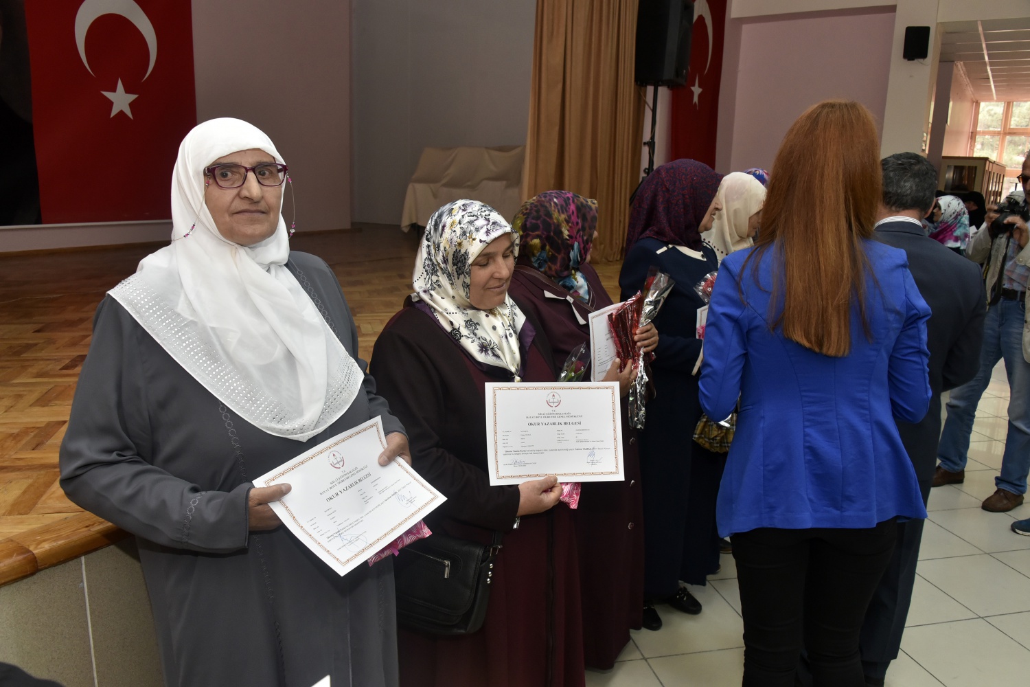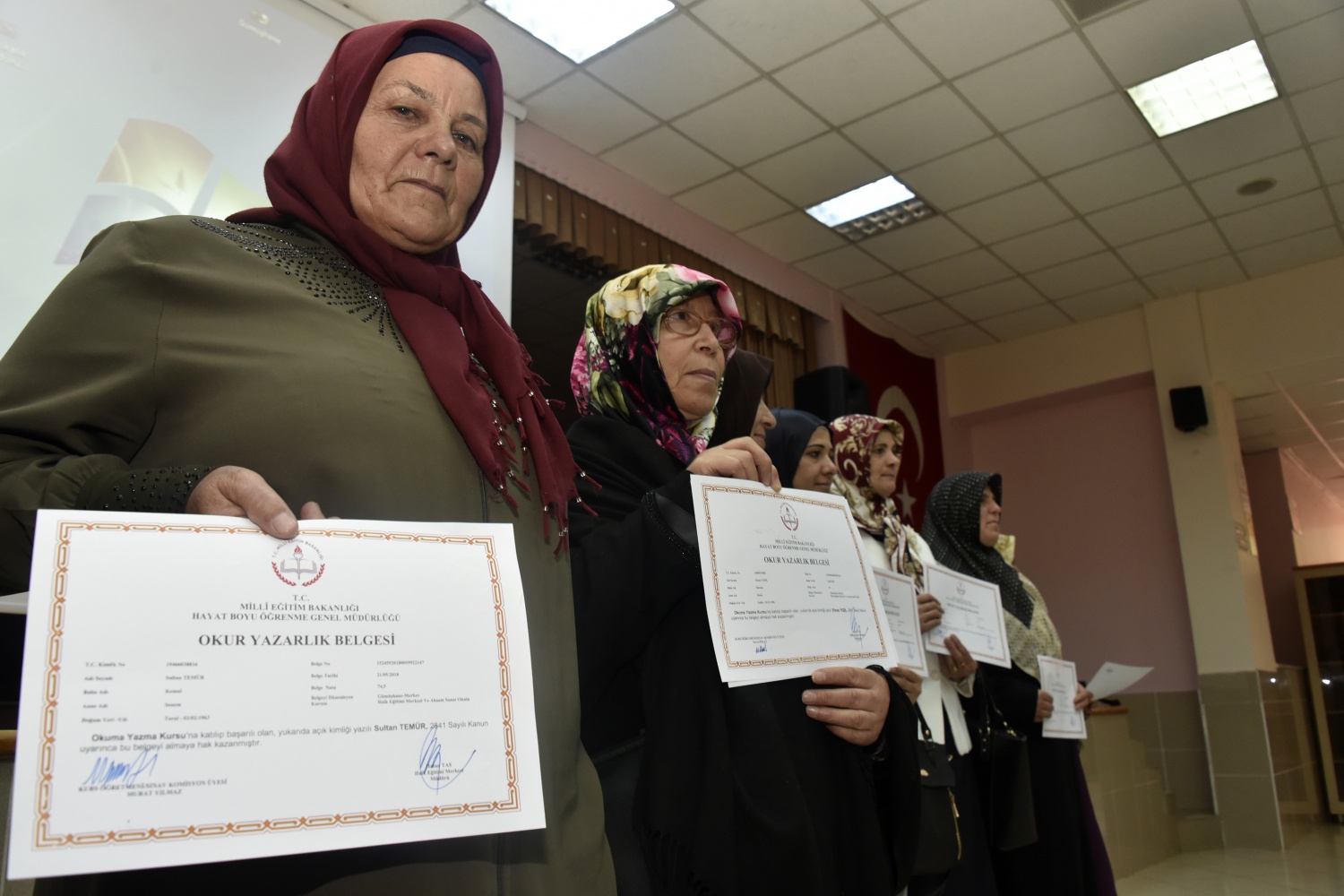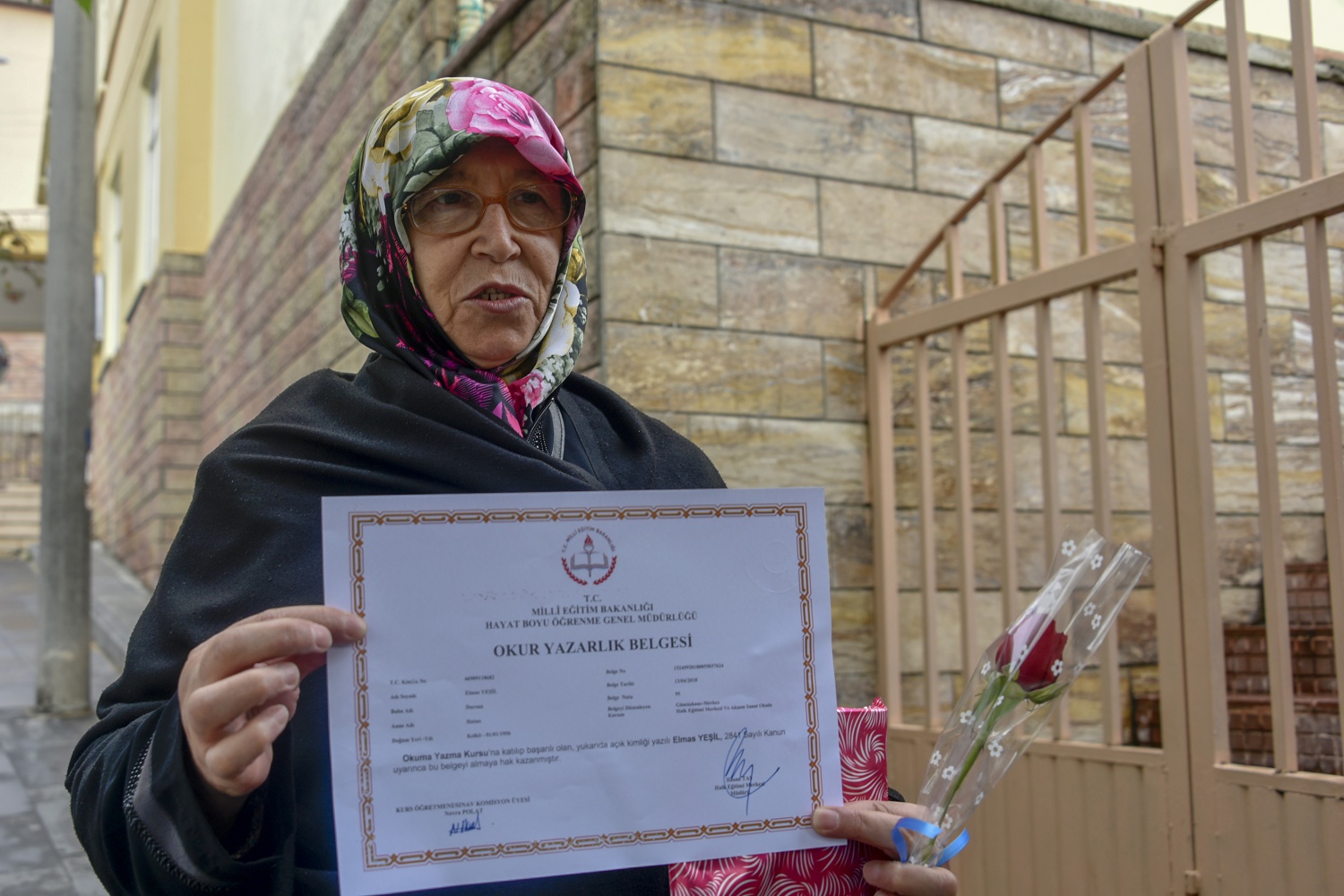 Kursu başarıyla tamamlayan 62 yaşındaki Elmas Yeşil ise hiç pes etmeden devam edeceğini, şuanda okuma yazmayı öğrendiğini hedefinin açık ortaokulu da bitirmek olduğunu söyledi.