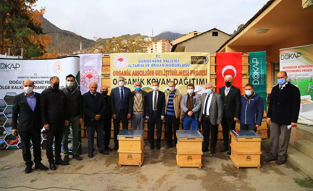 Doğu Karadeniz Projesi Bölge Kalkınma İdaresi Başkanlığı (DOKAP) kaynaklarıyla alınan 552 kovan Merkeze bağlı Gökdere, Bahçecik, Yeniyol köyleri ve Canca mahallesindeki 5 işletmeye, Torul ilçesine bağlı Dedeli ve Demirkapı köylerindeki 2 işletmeye, Köse ilçesine bağlı Övünce köyündeki 1 işletmeye, Kelkit ilçesine bağlı Deredolu beldesindeki 2 işletmeye olmak üzere 10 organik arıcılık işletmesine teslim edildi.