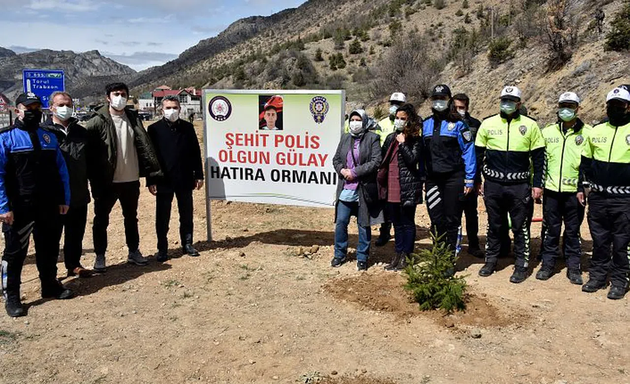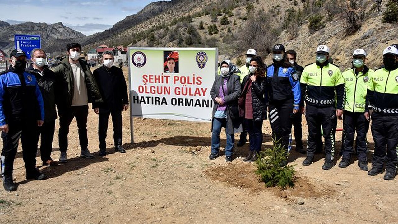 Şehit Polis Memuru Olgun’un eşi Hülya ve oğlu Kerem Gülay’ın da katıldığı törende İl Emniyet Müdür Yardımcısı Celal Sarısoy, şube müdürleri, Emniyet mensupları ve Gümüşhane Orman İşletme Müdürü Orhan Şen ile personeli 400 adet sedir ağacı fidanını dua ettikten sonra toprakla buluşturarak can suyunu verdi.