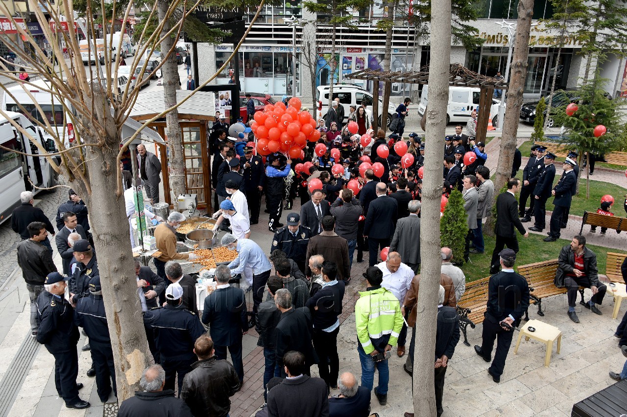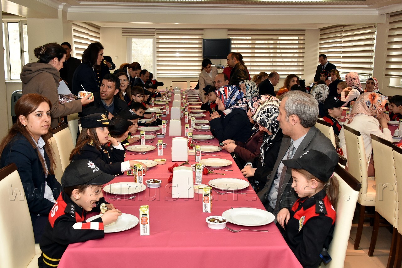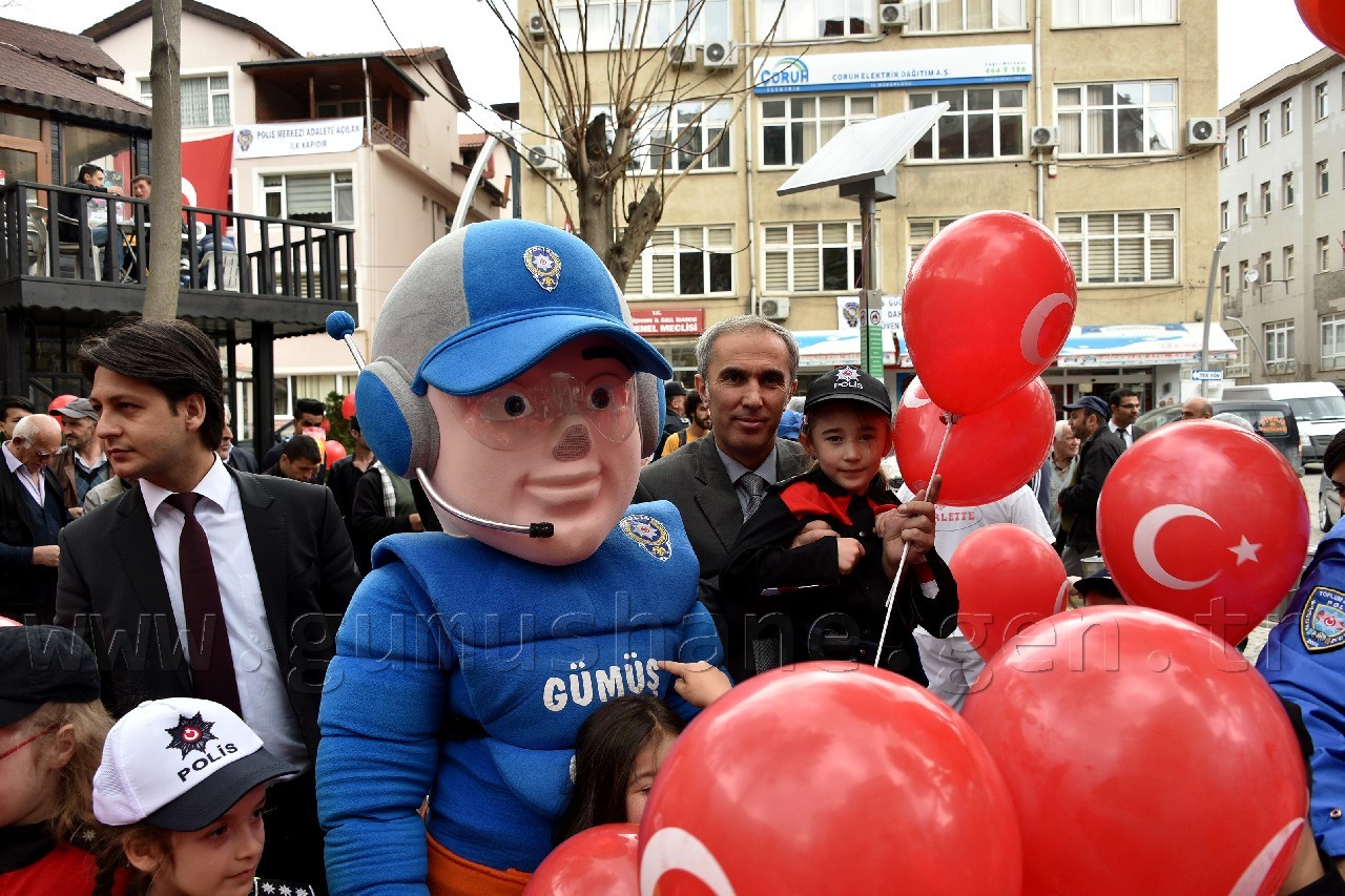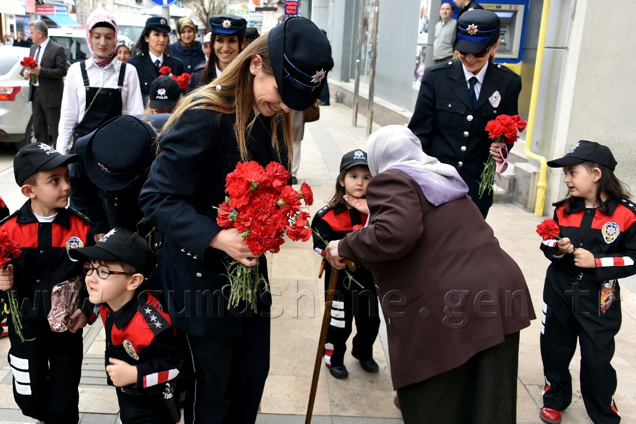 Kutlama programı kapsamında polis kıyafeti giydirilmiş öğrenciler, beraberinde veli, polis amca ve ablaları ile birlikte Atatürk Caddesinde ki esnafa karanfil takdim etti. Fatih parkına kadar caddenin her iki yakasında da esnaf ziyareti yapan minik öğrenciler daha sonra Fatih Parkında Gümüşhane Emniyet Müdürlüğünün maskotu Gümüş Çocuk’la buluştu.