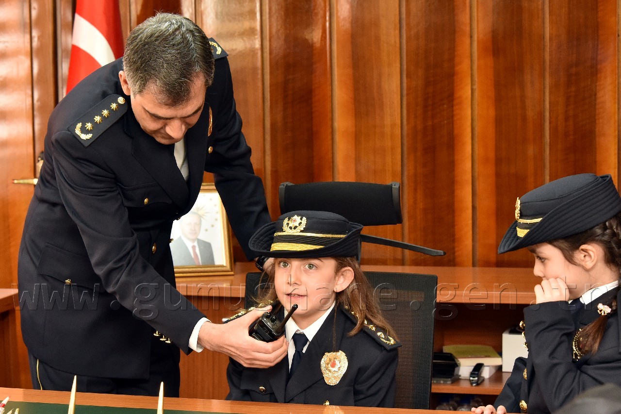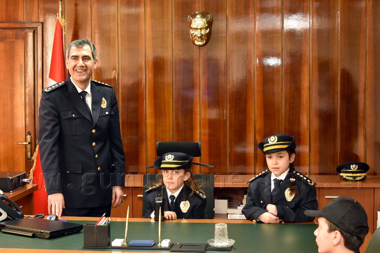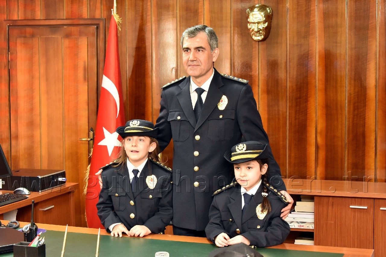 Yusuf Çiftçioğlu İlkokulu öğrencileri ve polis çocuklarından oluşan grup ilk olarak İl Emniyet Müdürü Orhan Kar’ı makamında ziyaret etti. Öğrencilere çeşitli hediyeler vererek onlarla bir süre sohbet eden Kar, daha sonra makamını öğrenciler Naz Aslan ve Zeynep Ustaoğlu’na bıraktı. Aslan ve Ustaoğlu, polis telsizinden tüm emniyet teşkilatının polis haftasını kutlamayı da ihmal etmedi.