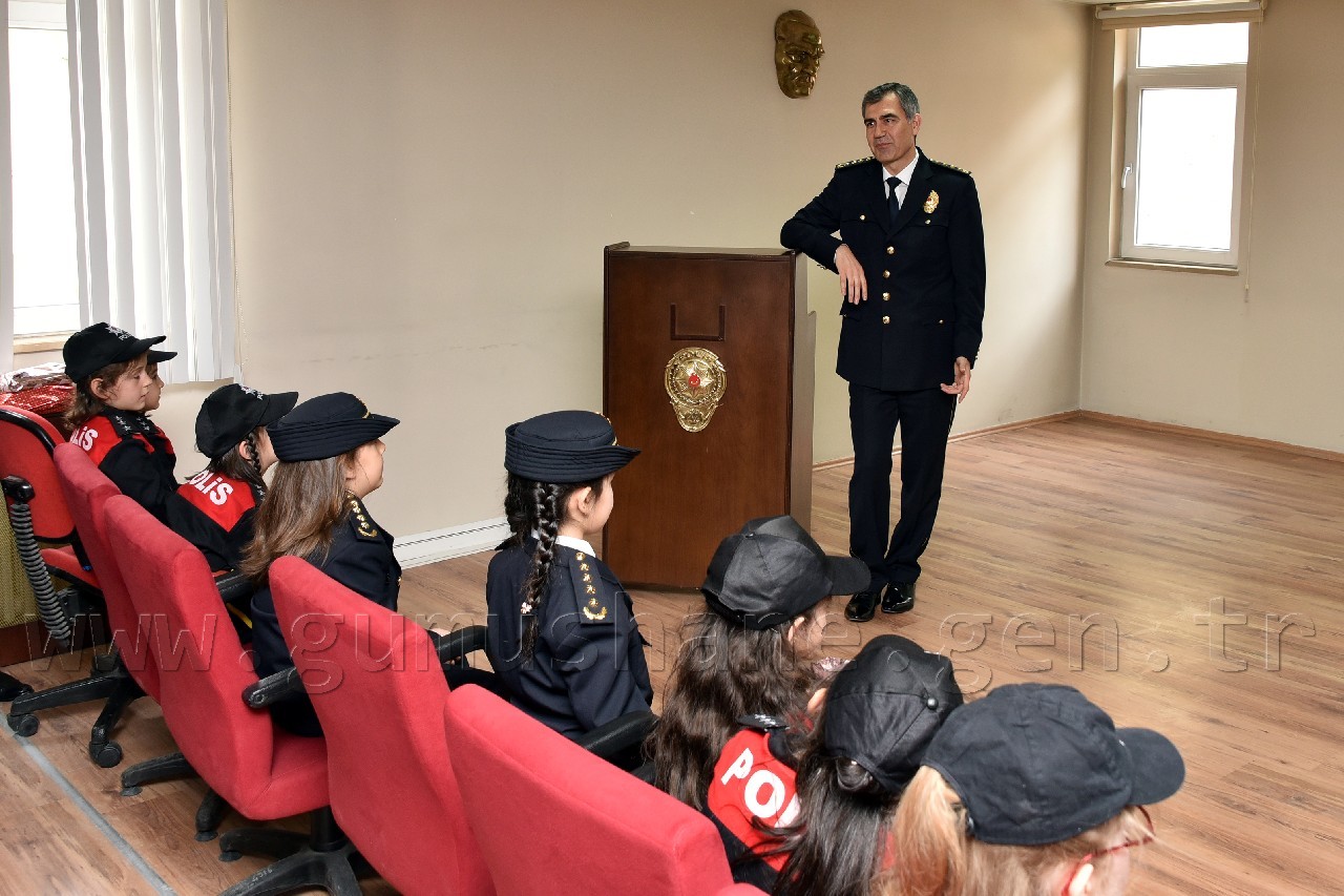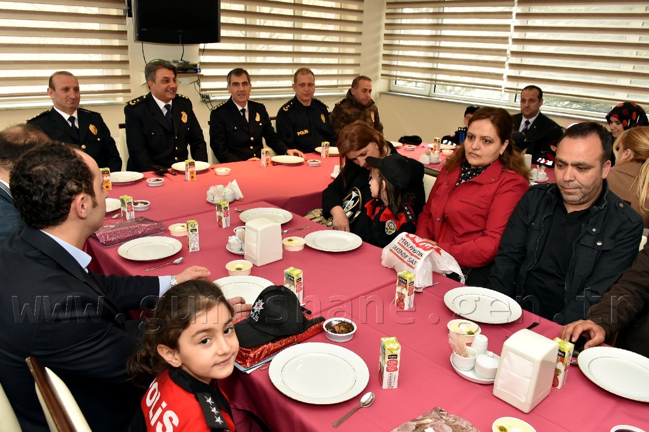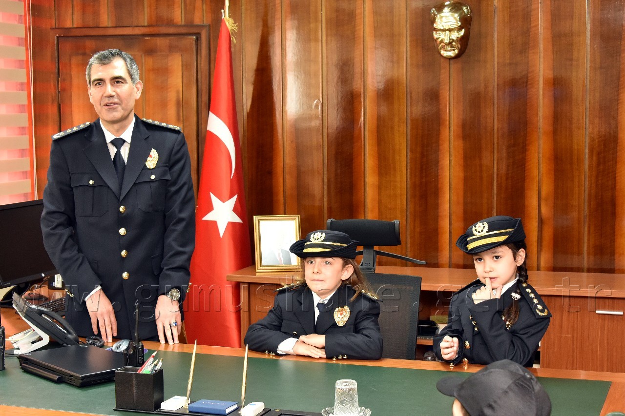 Yusuf Çiftçioğlu İlkokulu öğrencileri ve polis çocuklarından oluşan grup ilk olarak İl Emniyet Müdürü Orhan Kar’ı makamında ziyaret etti. Öğrencilere çeşitli hediyeler vererek onlarla bir süre sohbet eden Kar, daha sonra makamını öğrenciler Naz Aslan ve Zeynep Ustaoğlu’na bıraktı. Aslan ve Ustaoğlu, polis telsizinden tüm emniyet teşkilatının polis haftasını kutlamayı da ihmal etmedi.