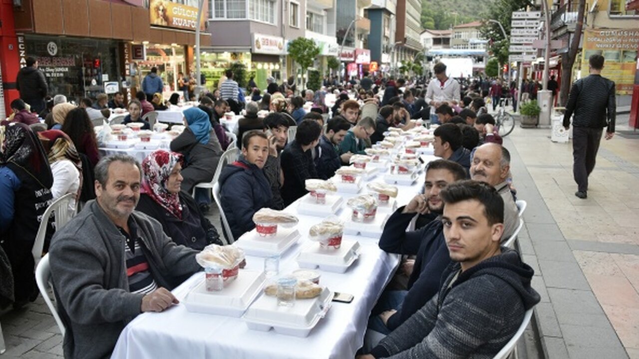 Gümüşhane’de Belediye Başkanlığı tarafından bu yıl 3.sü düzenlenen ‘Gönlümüz bir, soframız bir’ temalı sokak iftarında 3 bin kişi bir arada orucunu açtı.