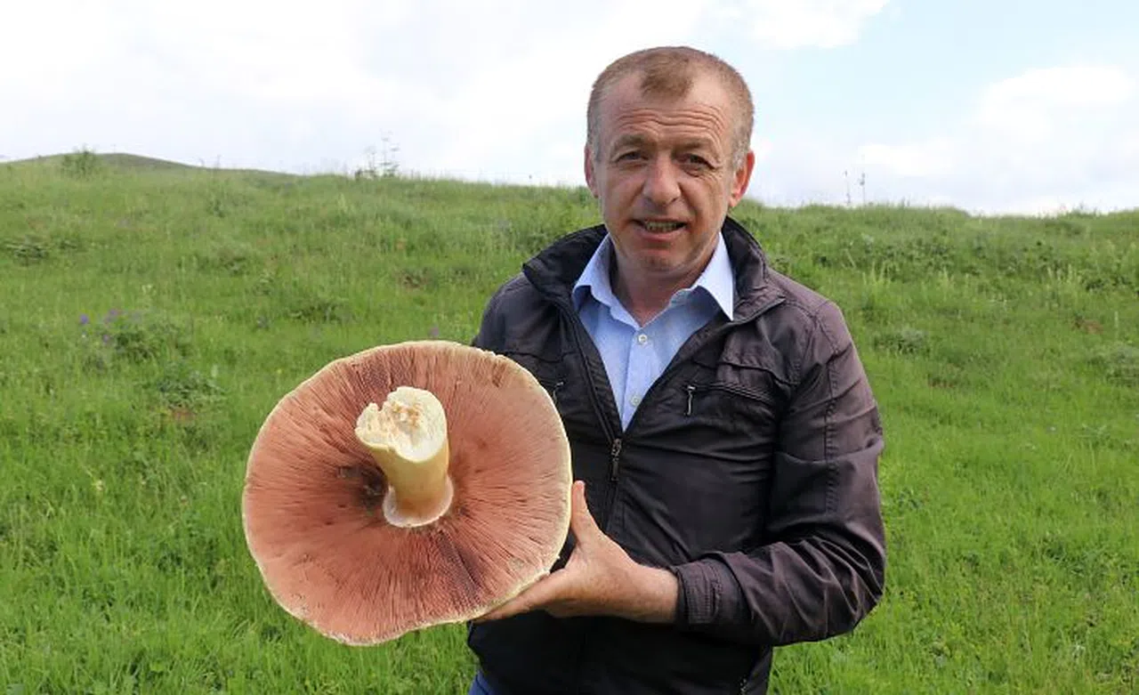 Gümüşhane’de vatandaşlar yaklaşık 2 kilogram ağırlığında ve 45 santimetre çapında dev ‘kızıl mantar’ buldu. Mantarı bulan Mehmet Güvendi, 25 yıldır hiç bu kadar büyük mantar bulmadığını söyledi.