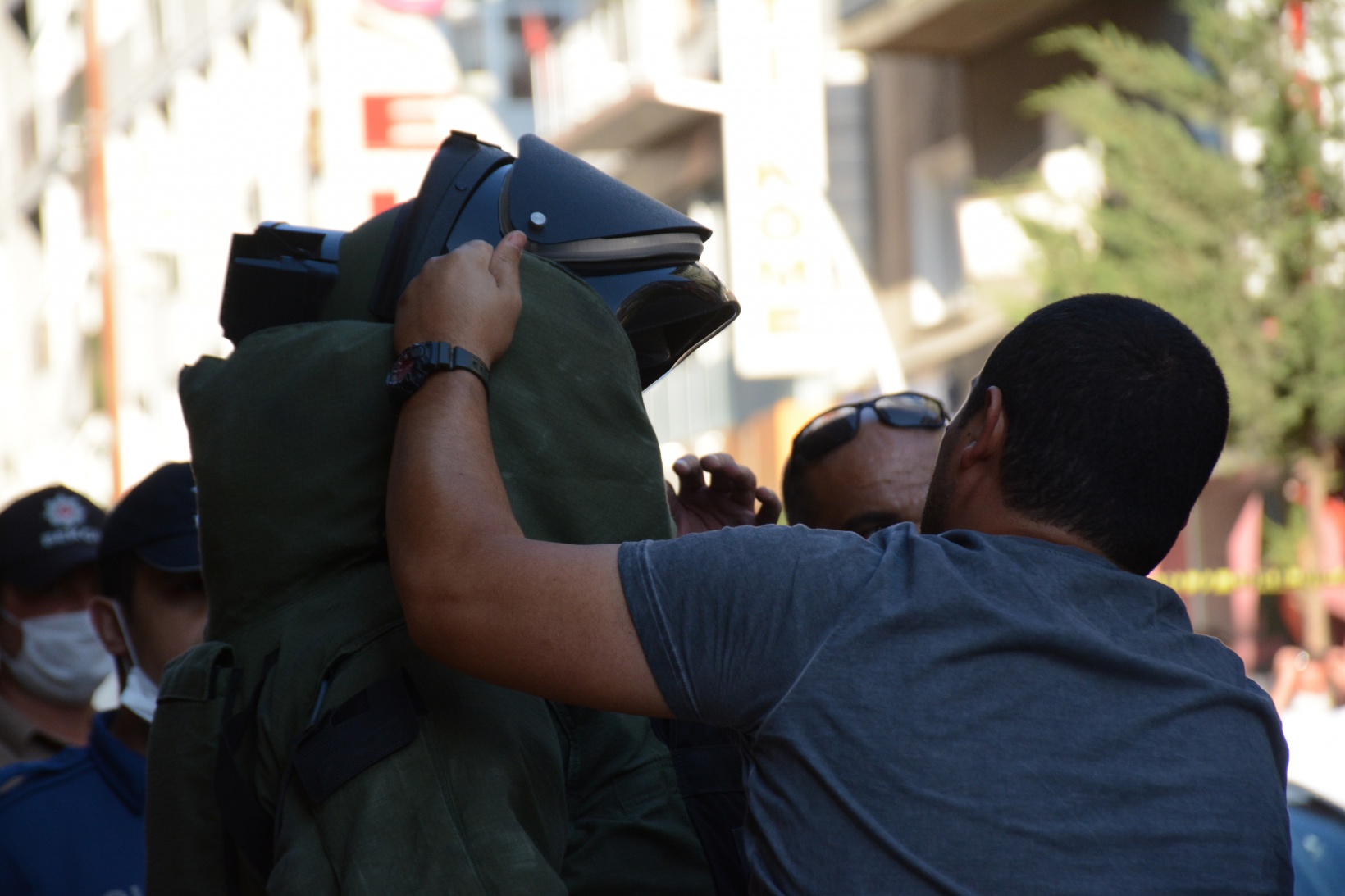 Yapılan anonslarla vatandaşlar olay yerinden uzaklaştırılırken, bölgeye gelen bomba imha uzmanını koruyucu elbisesini giydikten sonra valizi fünyeyle kontrollü olarak patlattı. Valizden ayakkabı ve elbise gibi kişisel eşyalar çıktı.