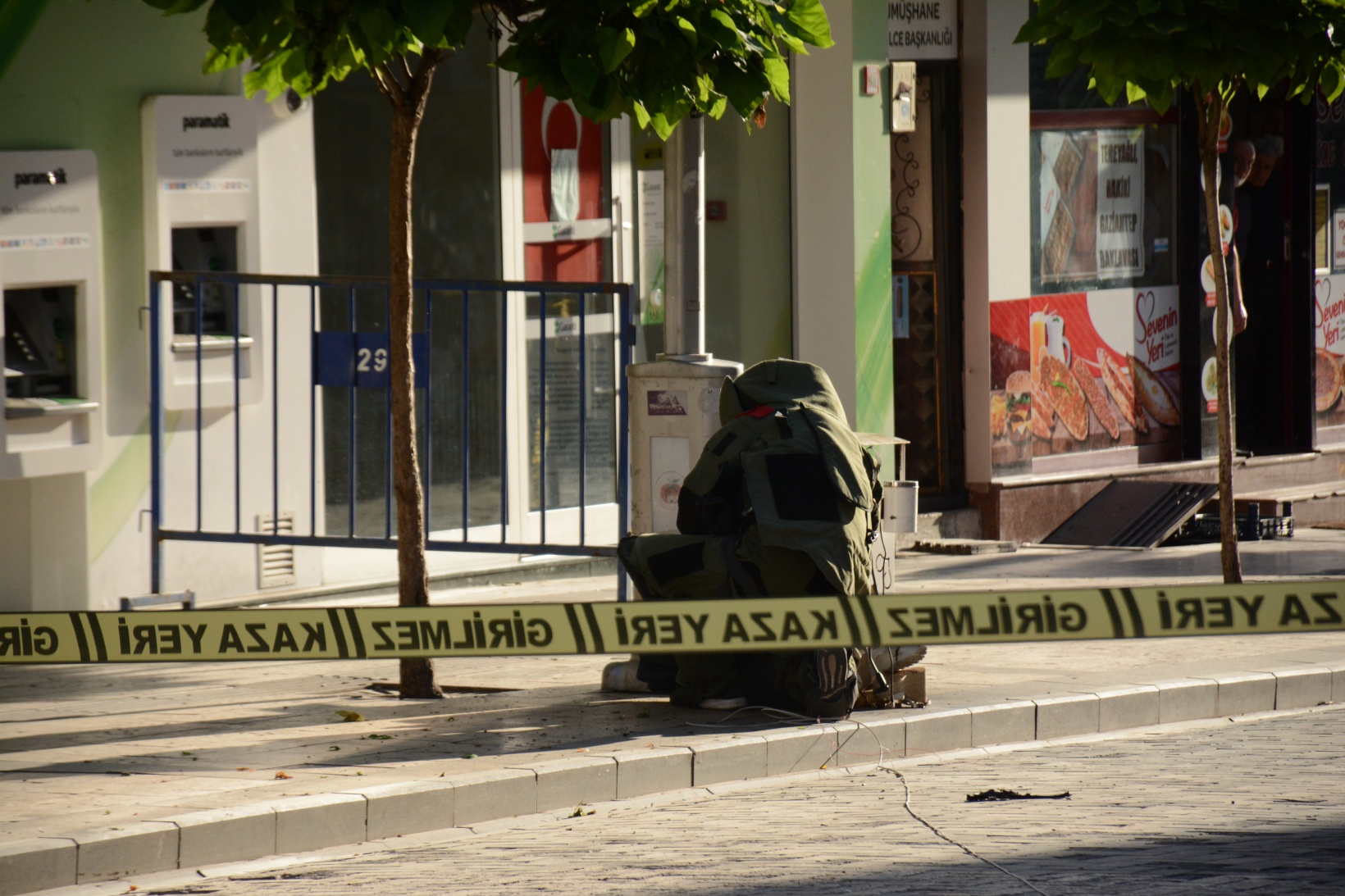 Atatürk Caddesindeki bir banka şubesi önünde akşam saatlerinde şüpheli paket ihbarı alan İl Emniyet Müdürlüğü ekipleri valizin bulunduğu kaldırıma güvenlik şeridi çekerek caddeyi araç trafiğine kapattı.