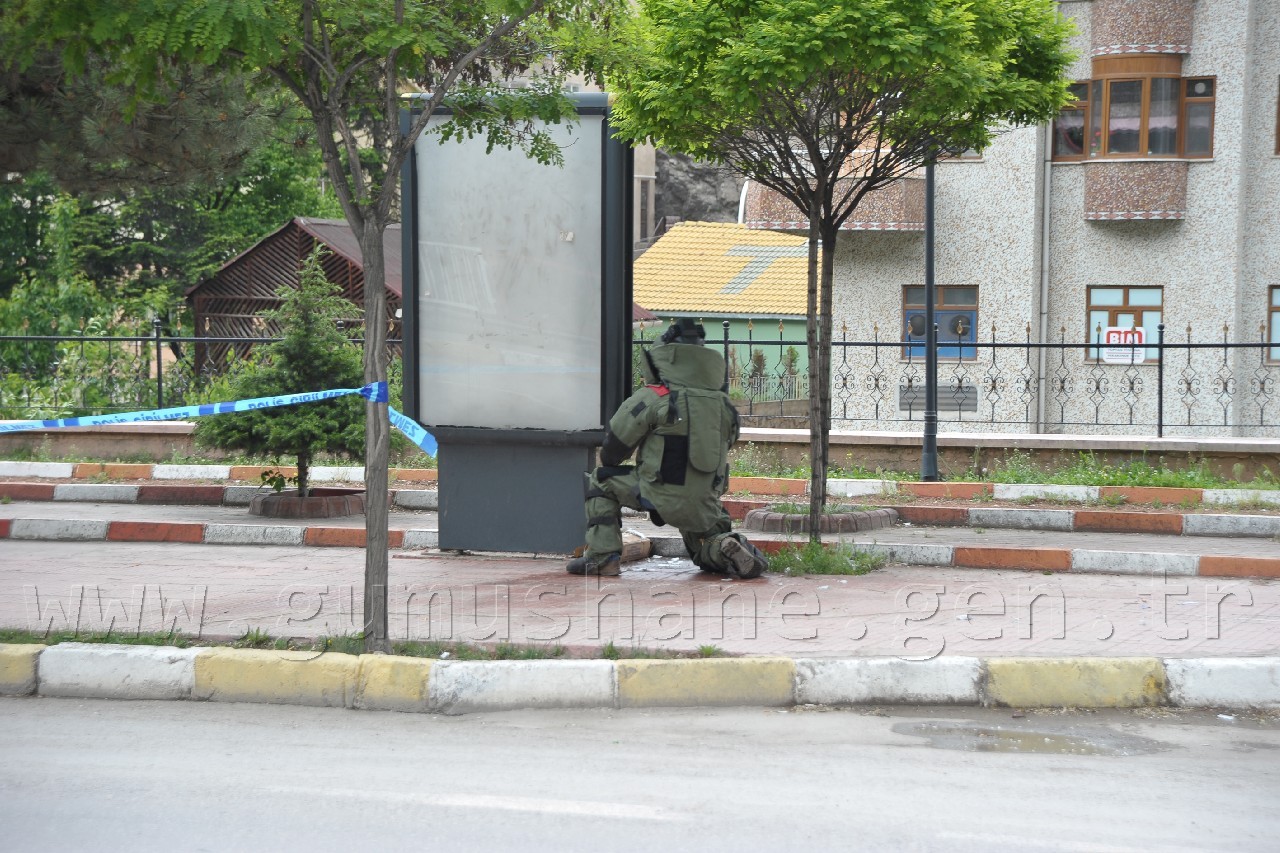 Olay yerine gelen polis ekipleri, Gümüşhane-Trabzon karayolunu trafiğe kapatarak çevrede güvenlik önlemi aldıktan sonra bölgeye gelen bomba imha uzmanı şüpheli pakette inceleme yaptıktan sonra fünyeyle patlattı.