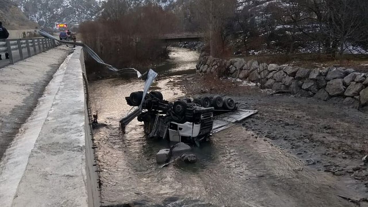 İlk olarak orta refüjü aşan tır ardından yol kenarındaki bariyerleri de yıkarak yaklaşık 7 metrelik mesafeden Harşit Çayına devrildi.