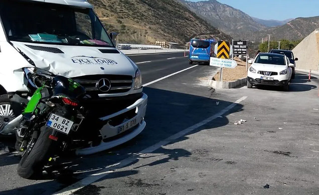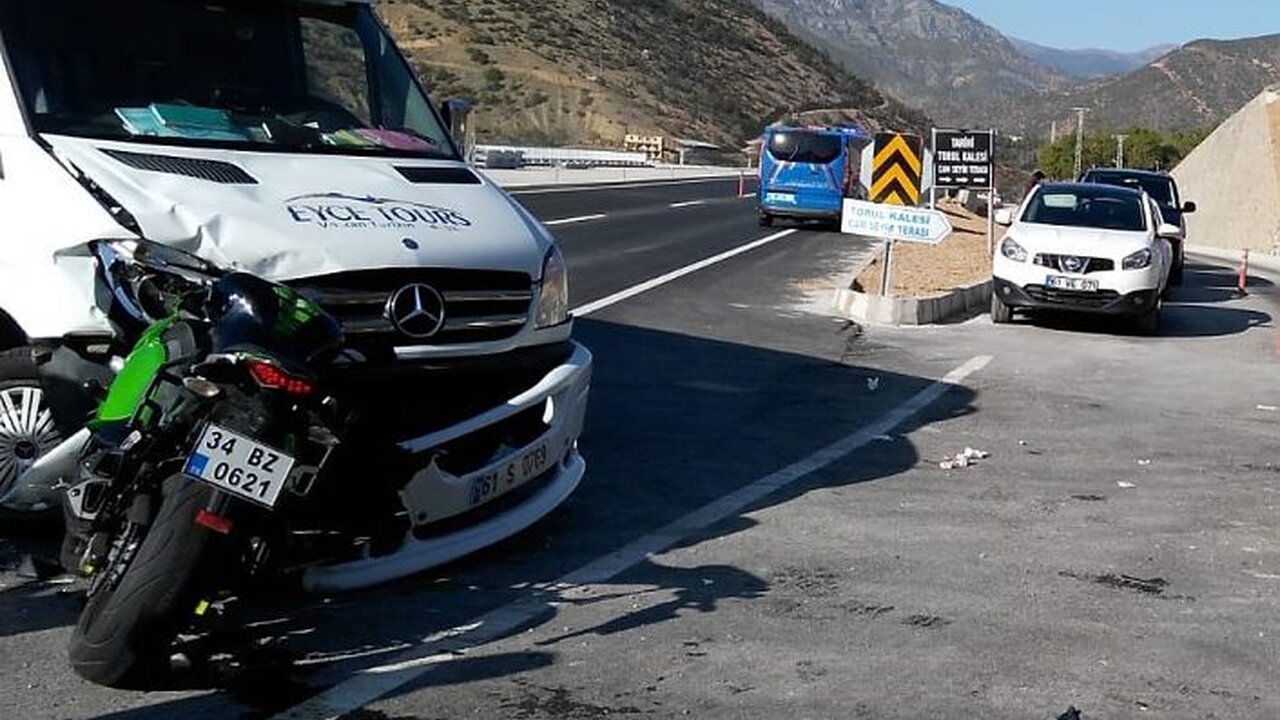 Edinilen bilgiye göre turist taşıyan H. B. yönetimindeki 61 S 0769 plakalı minibüs, Gümüşhane-Trabzon karayolunun Torul ilçesi Köprübaşı Mahallesi mevkiinde karşı yönden gelen Köksal Tanrıkulu'nun kullandığı 34 BZ 0621 plakalı motosikletle çarpıştı.