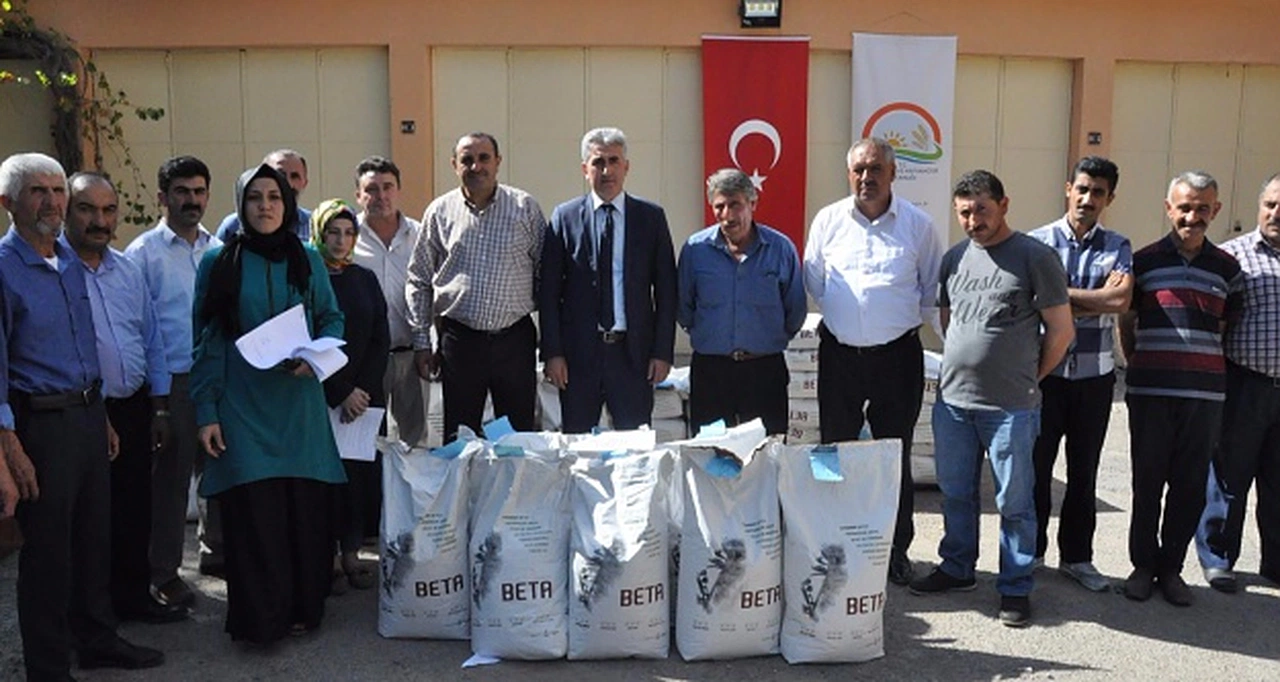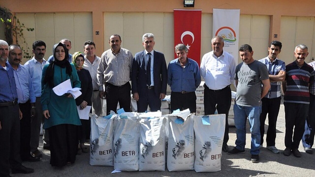 Kurum bahçesinde yapılan tohum dağıtımına Gıda, Tarım ve Hayvancılık İl Müdürü Edip Birşen, Bitkisel Üretim ve Bitki Sağlığı Şube Müdürü Mehmet Çikrıkci ve çiftçiler katıldı.