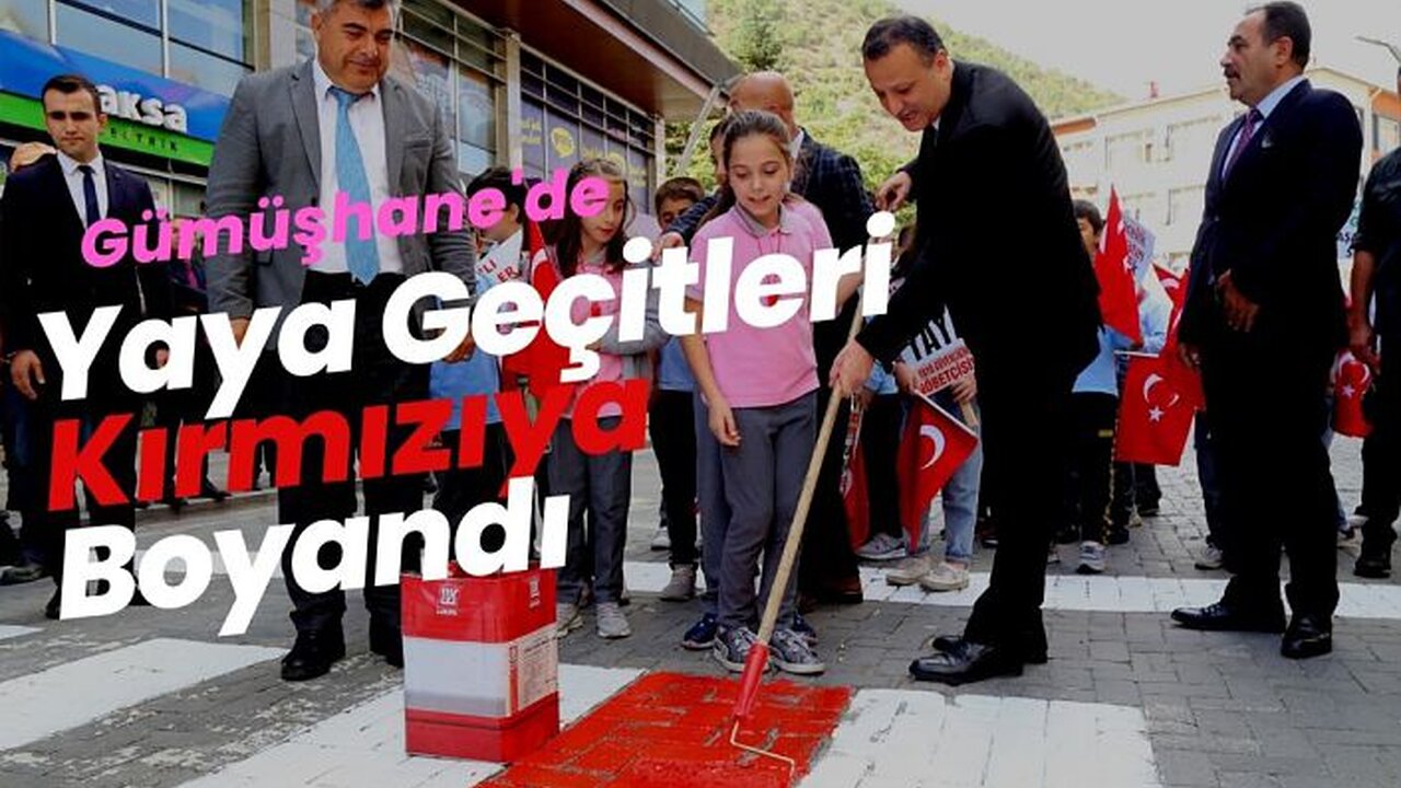 İçişleri Bakanlığınca trafikte yaya önceliğine dikkat çekmek ve sürücü duyarlılığını artırmak amacıyla "Yayalara öncelik duruşu, hayata saygı duruşu" sloganıyla başlatılan kampanya çerçevesinde Gümüşhane’de yaya geçitlerindeki çizgiler kırmızıya boyandı.
