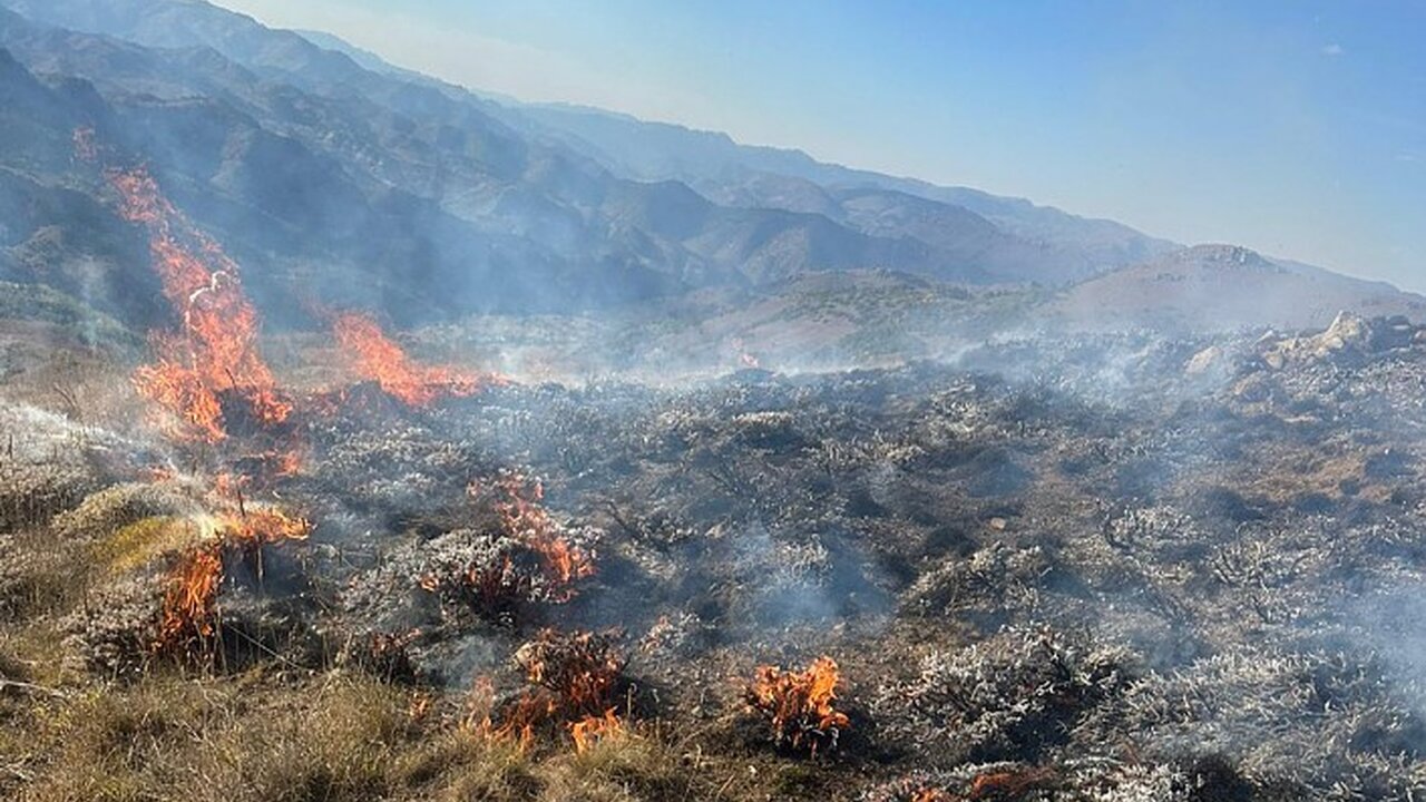 Yangında yaklaşık 2 hektarlık otluk ve gevenlik alan küle dönerken ekiplerin yoğun çabasıyla yangın ormanlık alana ulaşmadan söndürüldü.