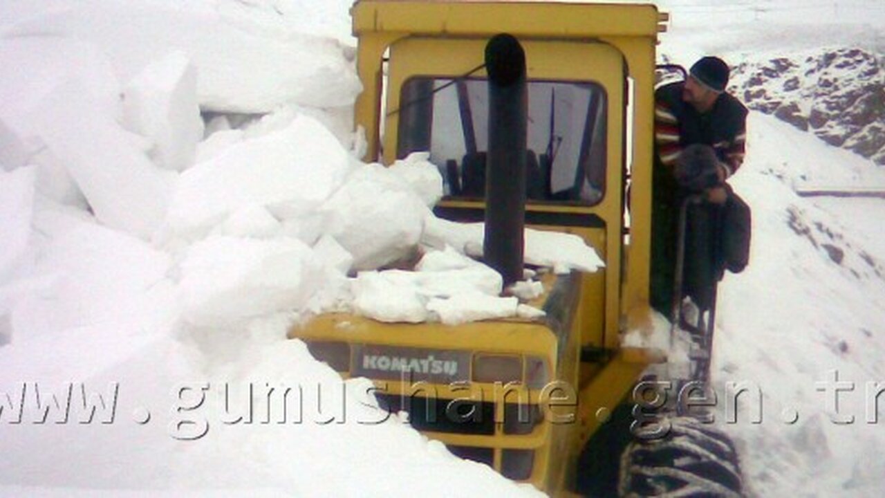 Gümüşhane’nin Yağmurdere vadisinde kapalı köy yollarını açan İl Özel İdaresine bağlı iş makinesinin üzerine çığ düştü.