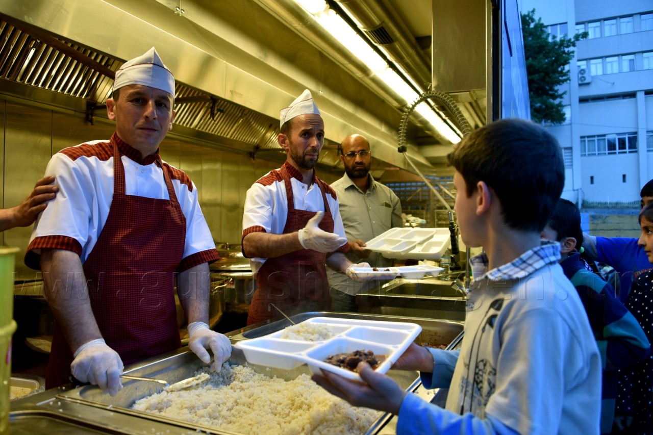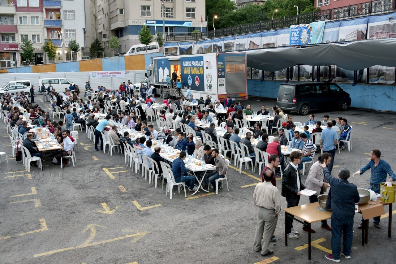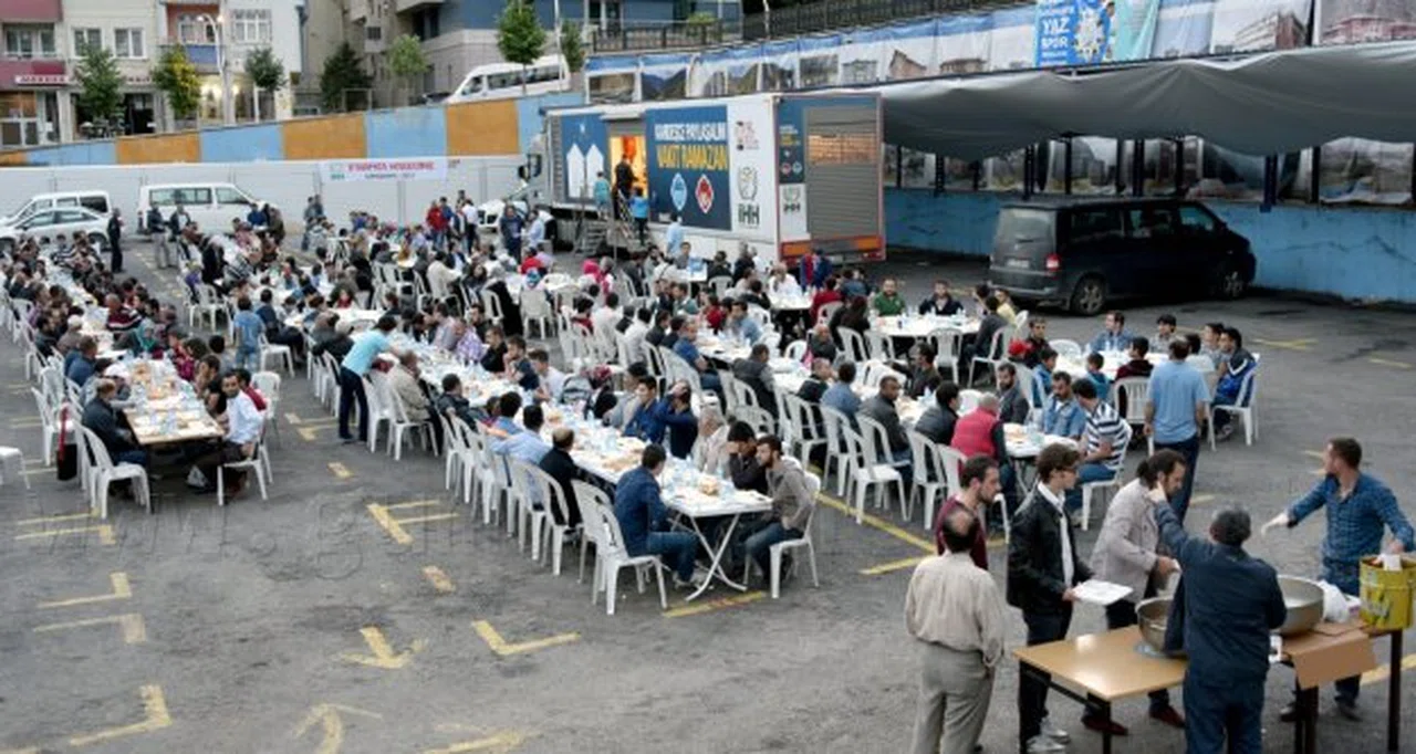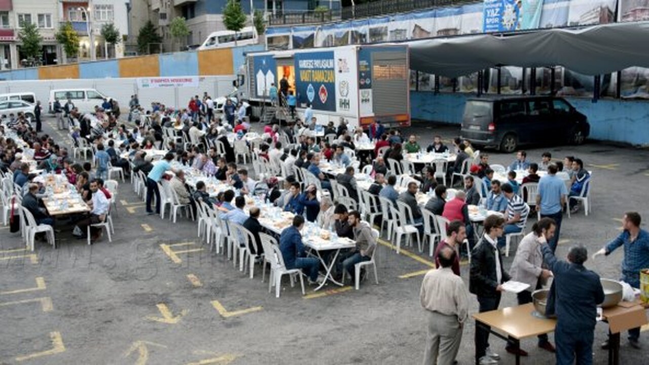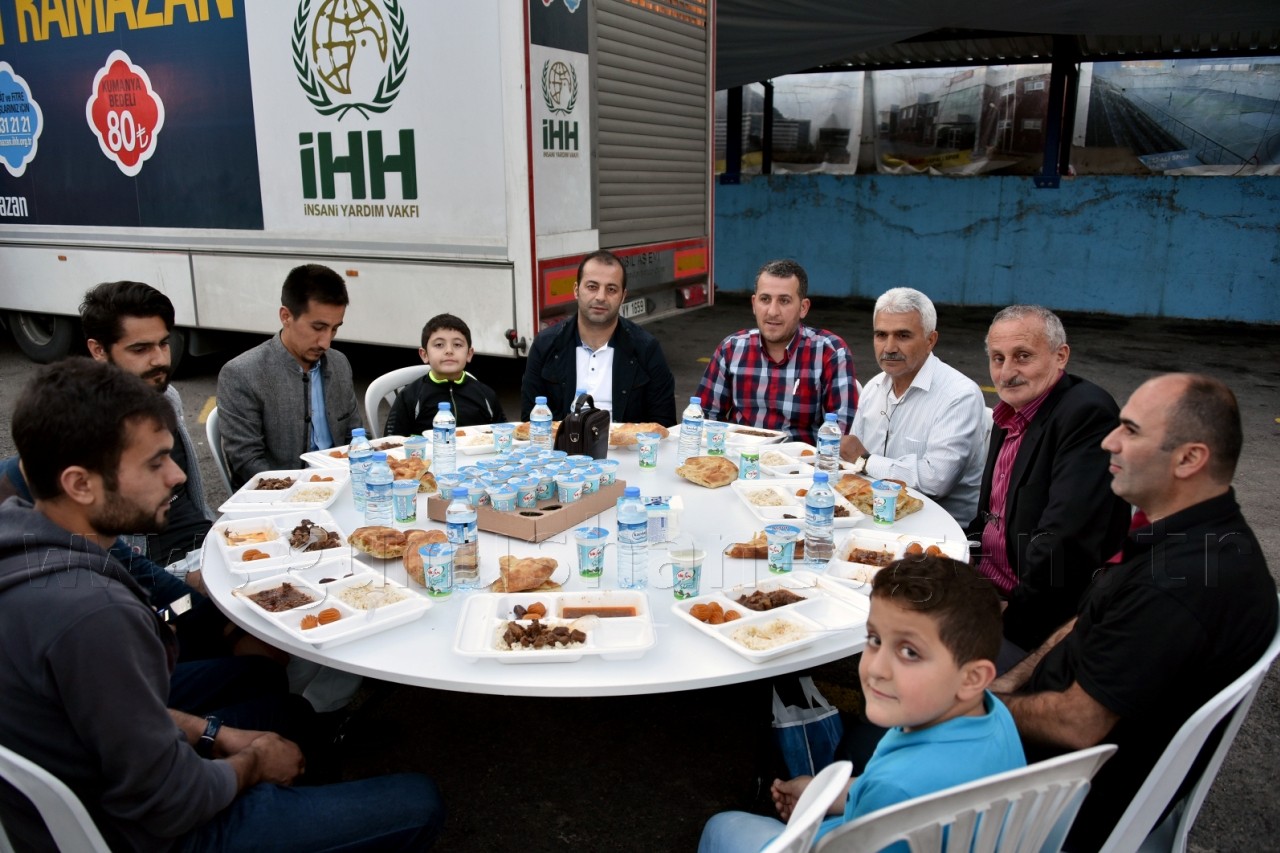 İHH’nın gezici aşevi TIR'ının Zafer Meydanında konuşlanmasının ardından yüzlerce vatandaş alandaki masaları doldurarak ezanın okunmasının ardından hep birlikte iftar yaptı.