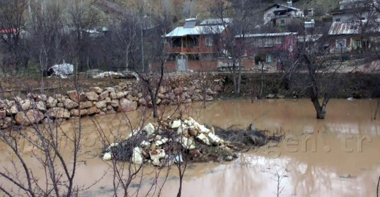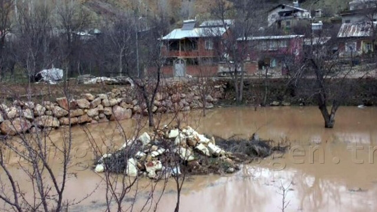 Bazı evlerin zemin katları da yağış nedeniyle sular altında kalırken, bahçelerde toplanarak istiflenen taş yığıntıları bahçenin sular altında kalması nedeniyle adacıklara döndü.