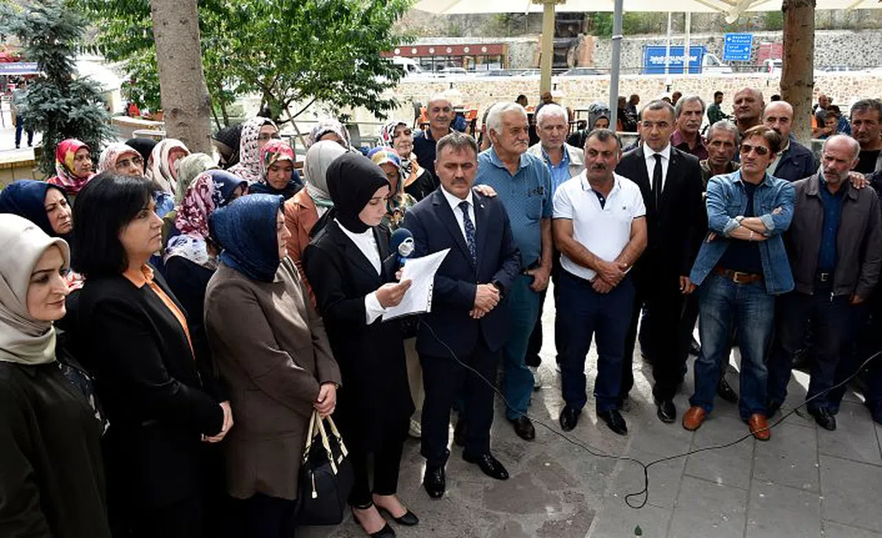 Fatih parkında toplanan kadınlara Belediye Başkanı Ercan Çimen eşi Gülsen Çimen’le birlikte eşlik ederken, hemen bitişikteki alanda oturan erkekler yapılan anonsla basın açıklamasına katılarak kadınlara destek oldu.