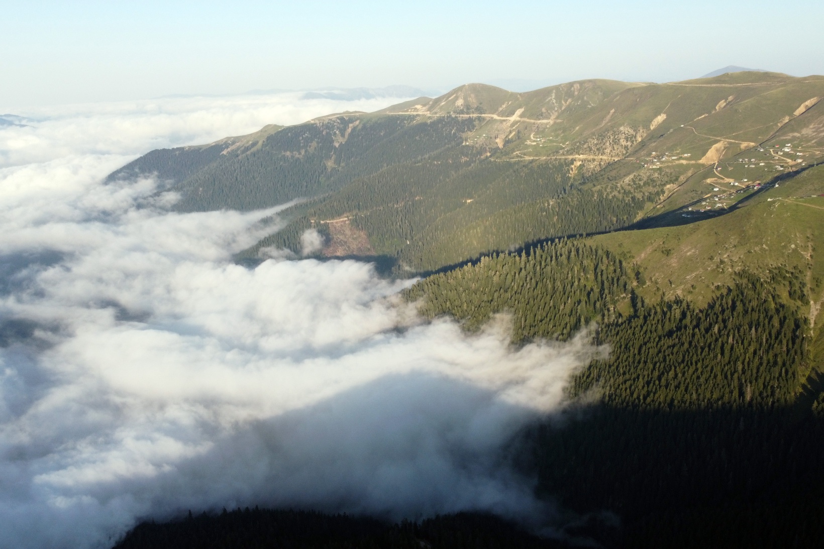 Gün batımının eşsiz manzarasını sis denizinin üzerinden dronuyla görüntüleyen Serkan Özdemir, Avrupa'nın en uzun köknarları, Balkanlar'ın, Kafkaslar'ın ve Türkiye’nin en boylu ve çaplı ladinlerinin yer aldığı ‘Canlı ağaç müzesi’ olarak nitelendirilen Örümcek Ormanları, Çıkrıkdüzü, Kütüklüyurt ve İbrahimalanı yaylalarının sisli halini sosyal medya hesaplarından paylaşınca çok sayıda görüntüleme ve beğeni aldı.