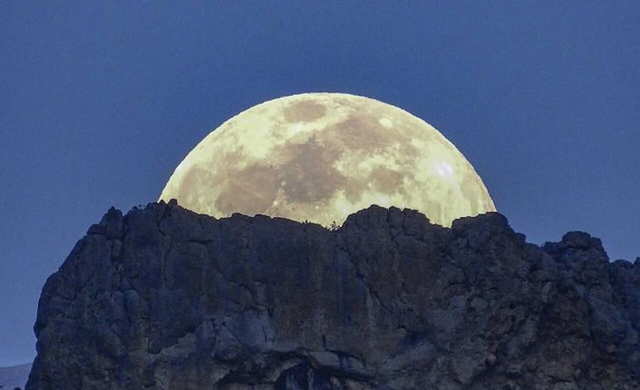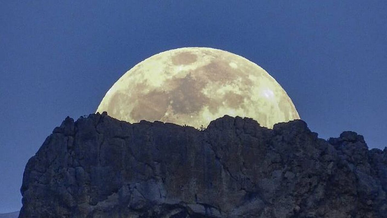 Gümüşhane'de kentin simgelerinden olan Kuşakkaya zirvesinin arkasından doğan dolunayın muhteşem görüntüsü Metin Aydın tarafından fotoğraflandı.