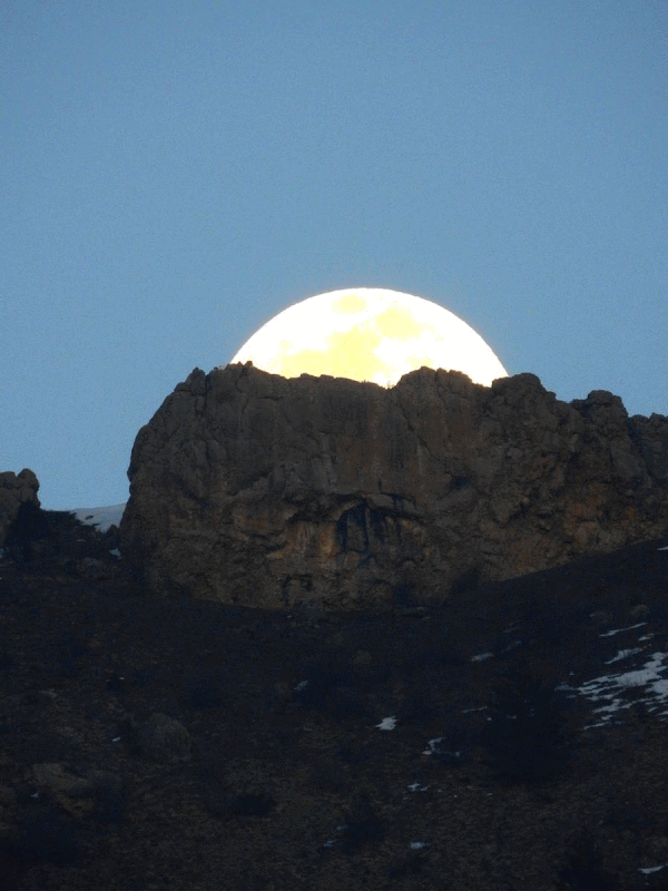 Dünyanın uydusu olan ayın dolunay evresindeki hali Gümüşhane’de son günlerde kentin simge zirvelerinden Kuşakkaya arkasından doğuyor.