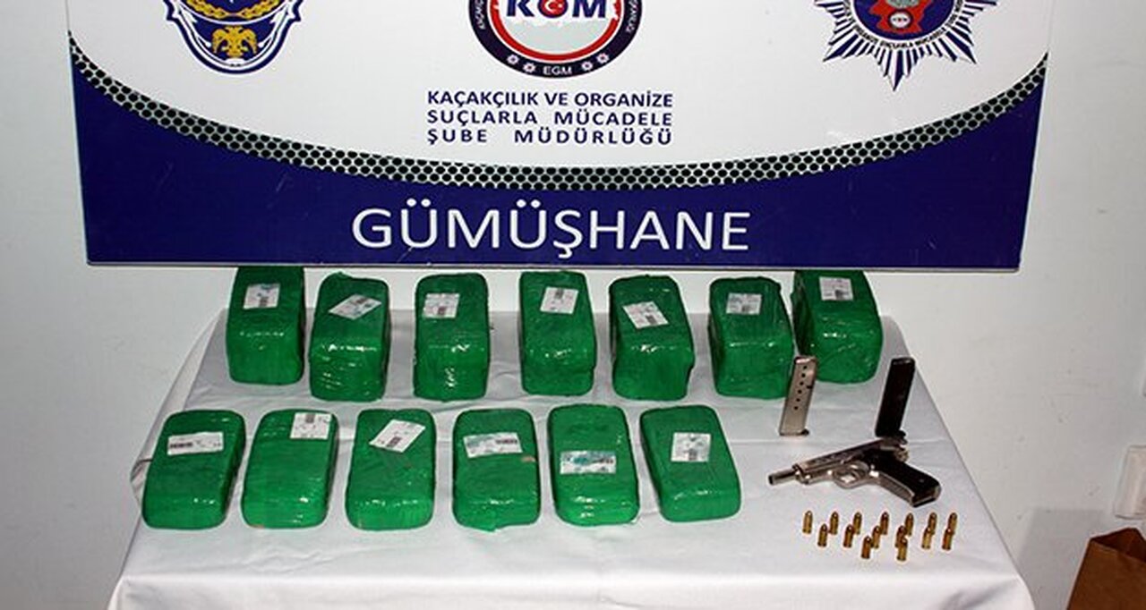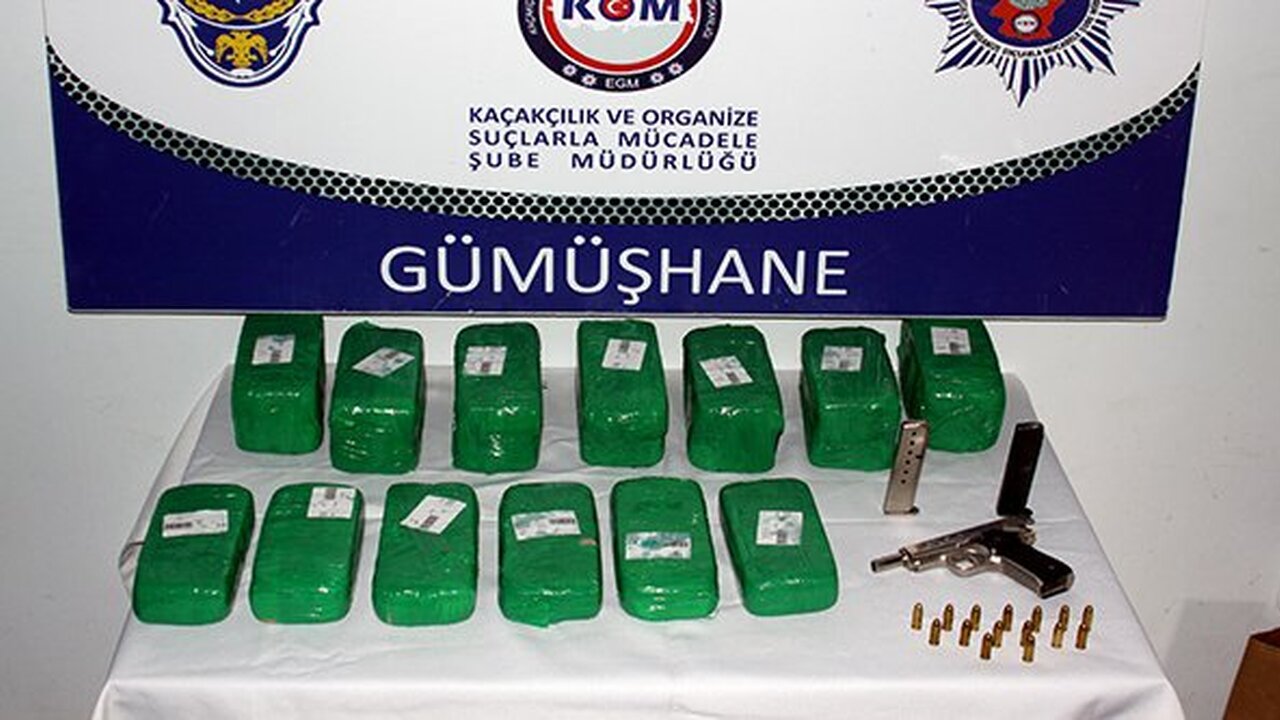 Gümüşhane Emniyet Müdürlüğü Kaçakçılık ve Organize Suçlarla Mücadele Şube Müdürlüğü (KOM) ve Kelkit İlçe Emniyet Müdürlüğü ekipleri yaptıkları yol uygulamasında 10 kilo 682 gram eroin ele geçirdi.