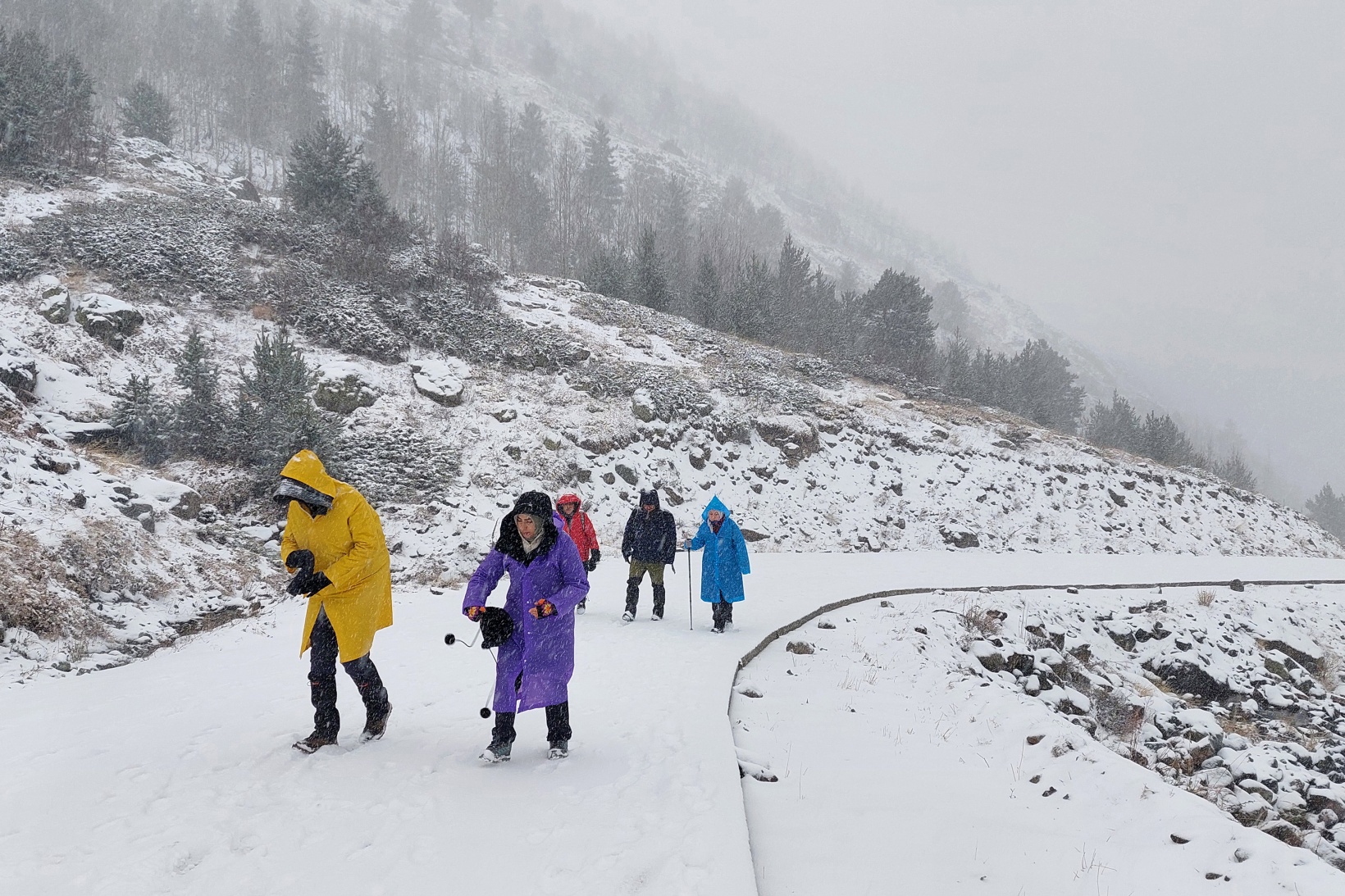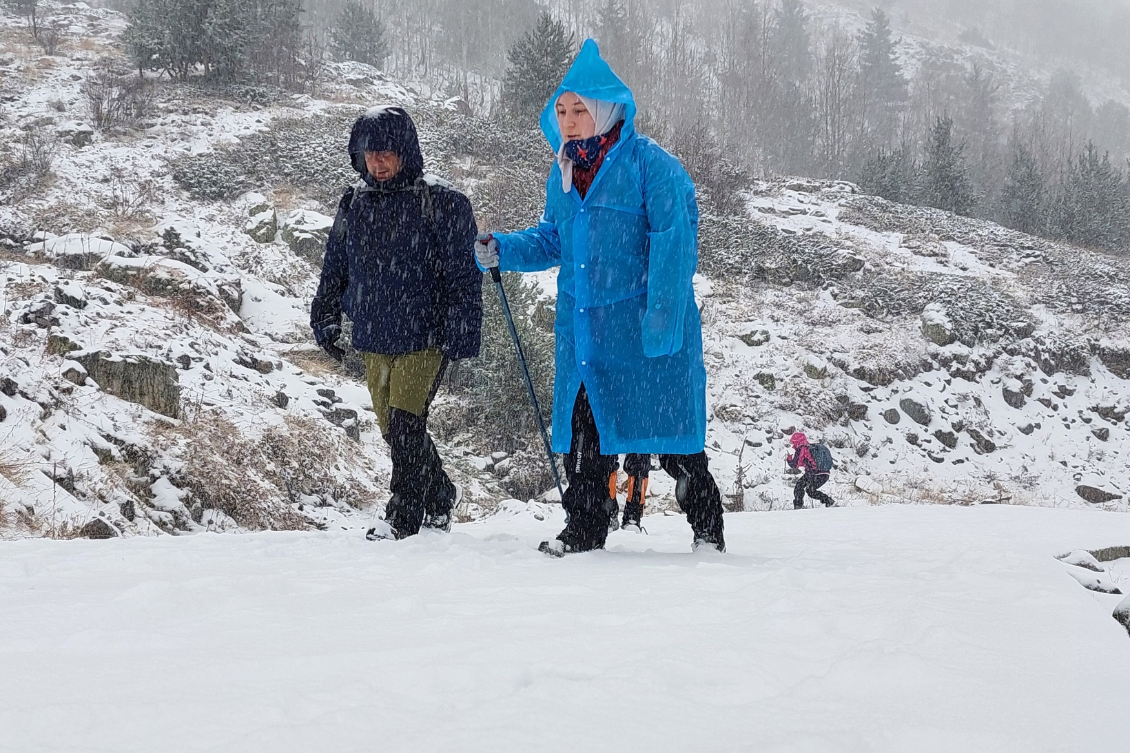 Araçla Gülaçar köyünün Esentepe Mahallesine kadar gelen 22 sporcu buradan başladığı yürüyüşü kar yağışının şiddetini artırmasıyla zaman zaman 50 santimetre yüksekliğe ulaşan karlı zeminde gerçekleştirdi.