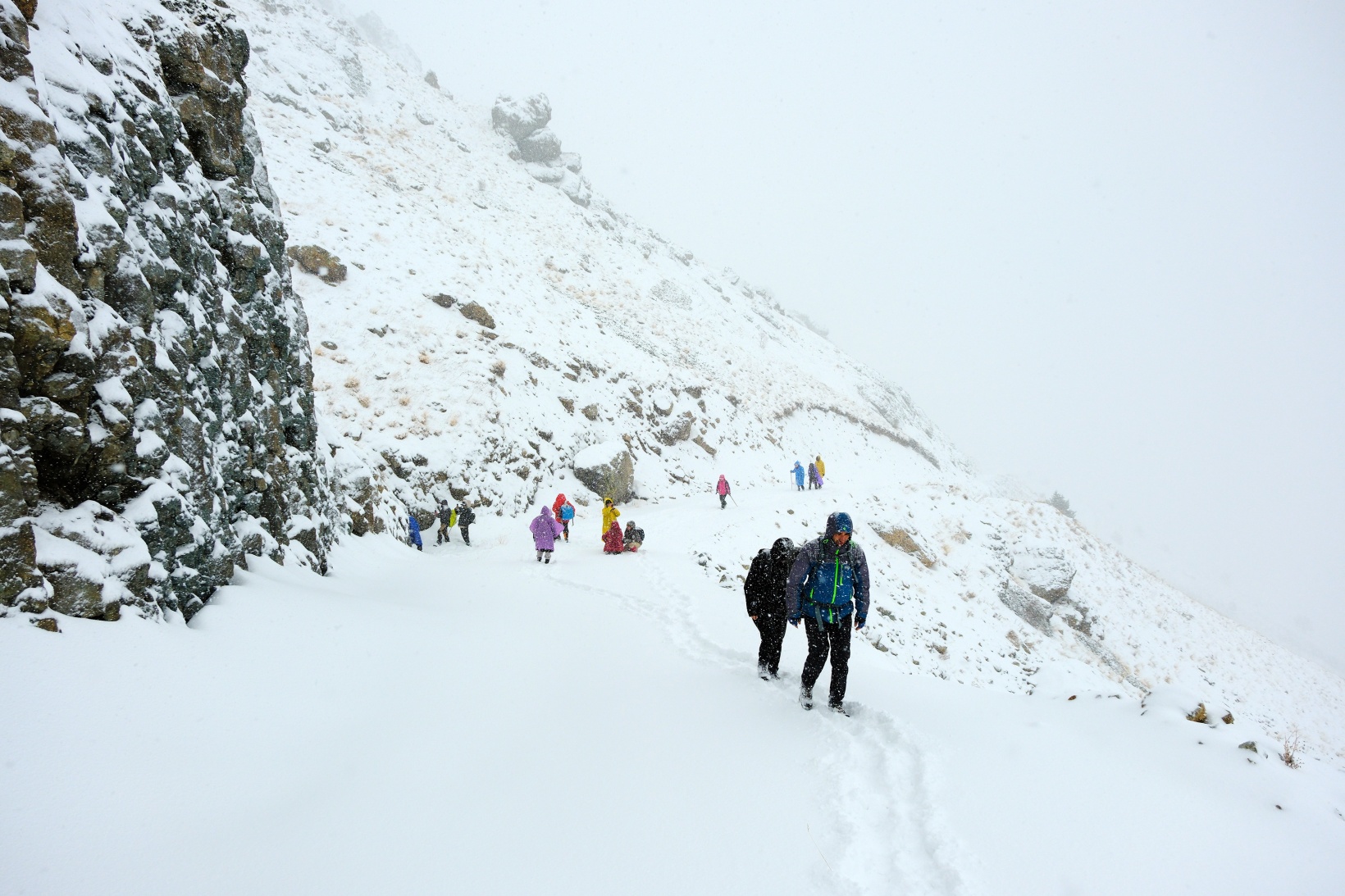 Yüksek rakımlara çıktıkça gerçekleşen tipi nedeniyle ilerlemekte zorlanan sporcular Büyük Göl’e kadar tırmandı. Günün kısa olması ve artan tipi nedeniyle yüksek rakımlardaki dondurucu hava koşullarında dolayı rotayı kısa tutarak geri dönüş yoluna geçti.