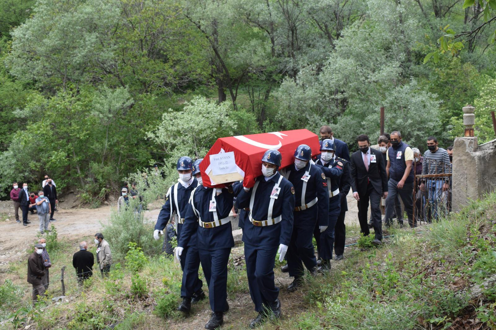 Törenin ve kılınan cenaze namazının ardından Gazi Fuat Ayhan’ın Türk bayrağına sarılı naaşı Kaymakam Ömer Said Karakaş, Aile ve Sosyal Hizmetler İl Müdürü Zekai İnan ve gazi arkadaşlarının omuzlarında götürüldüğü aile kabristanında toprağa verildi.