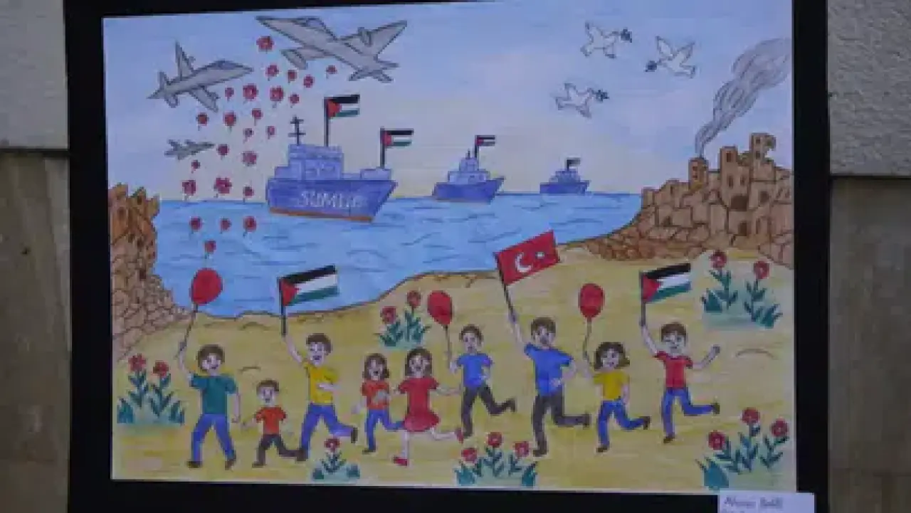 Etkinlik kapsamında öğrenciler, Filistin için hissettiklerini resimlerle ifade ederek “40 gemi – 40 resim” sloganıyla bir sergi açtı. Sergideki çizimler, çocukların barış ve dayanışma mesajlarını yansıttı.
