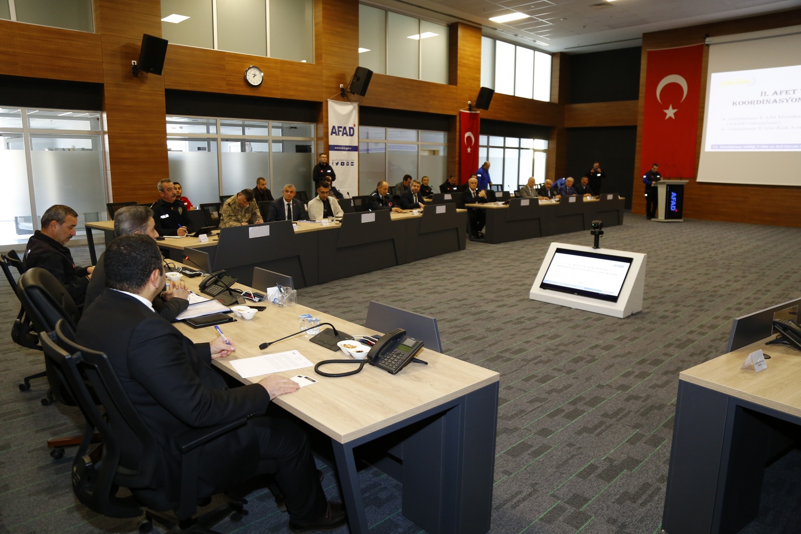 İl Afet ve Acil Durum Müdürlüğü salonunda Vali Aydın Baruş’un başkanlığında gerçekleştirilen toplantıya ilgili kurum ve kuruluşların temsilcileri katıldı.